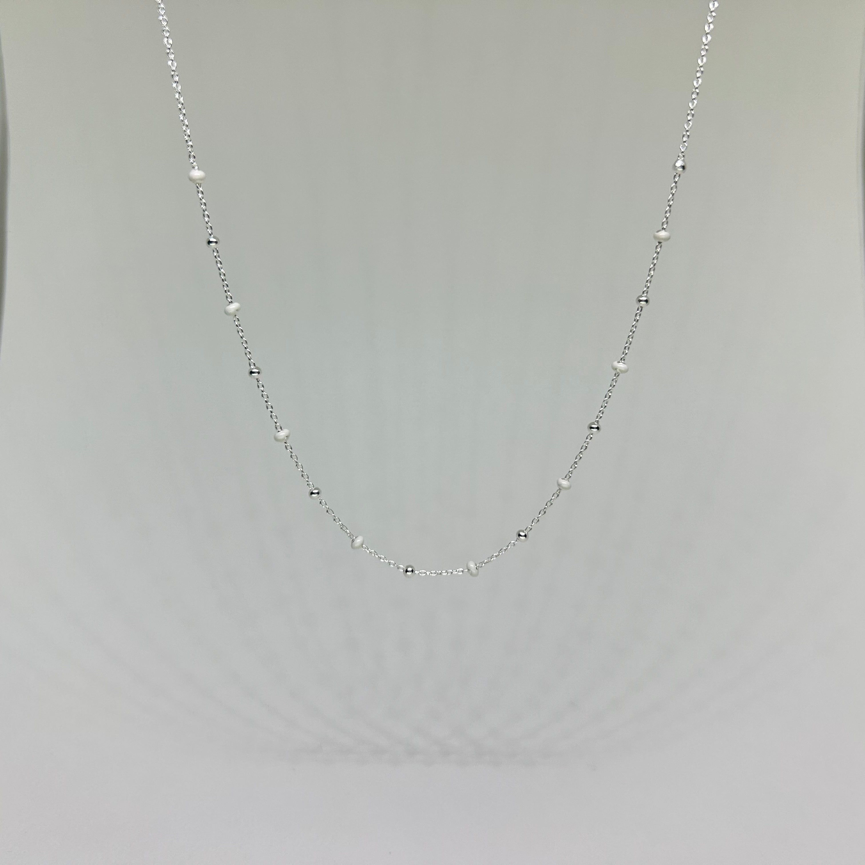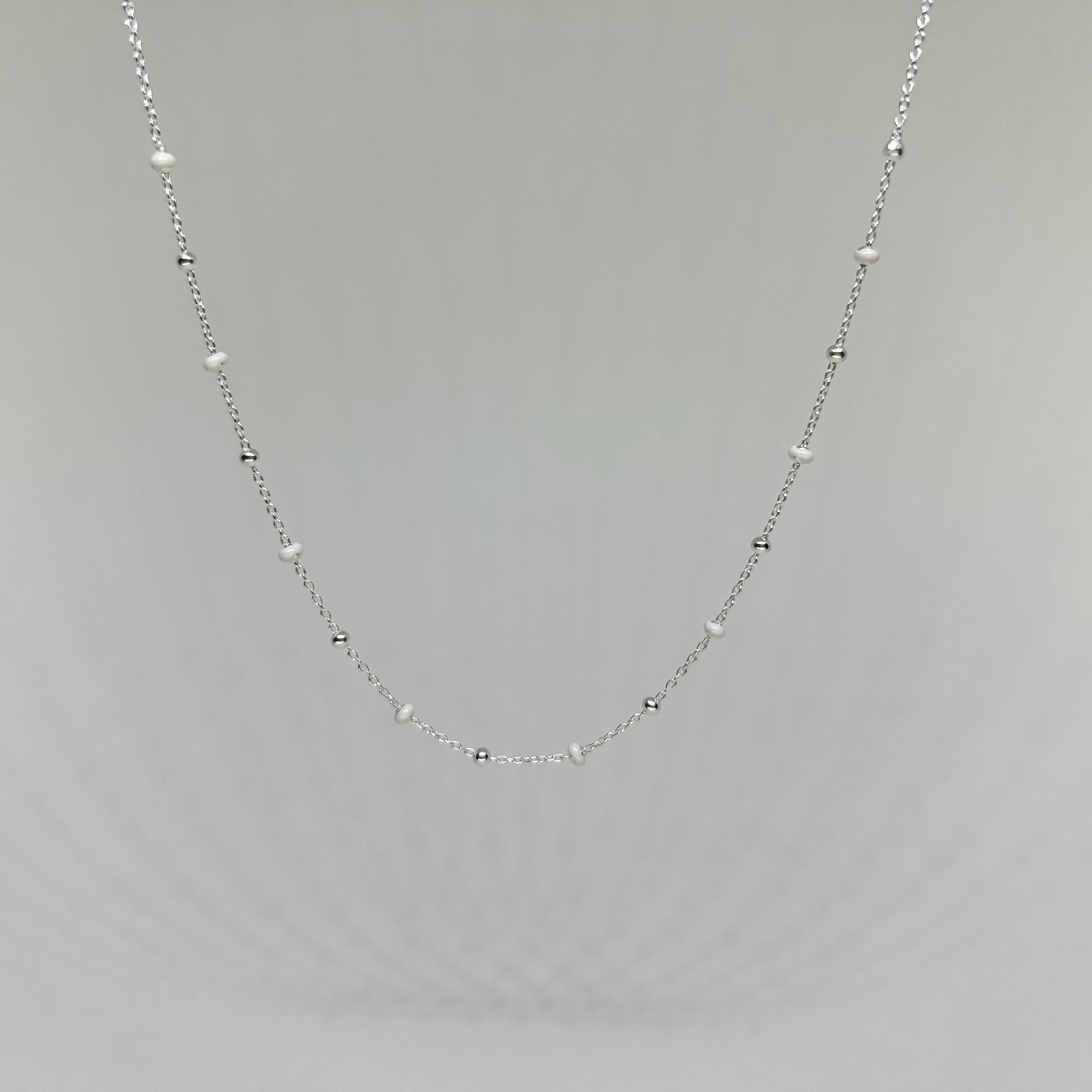 Élégance intemporelle. Ce collier en argent 925 est composé de perles en argent et de perles en émail blanc. Sa combinaison unique offre une allure sophistiquée qui se marie à toutes les tenues. Un bijou chic à porter pour toutes les occasions. Une perfection intemporelle!