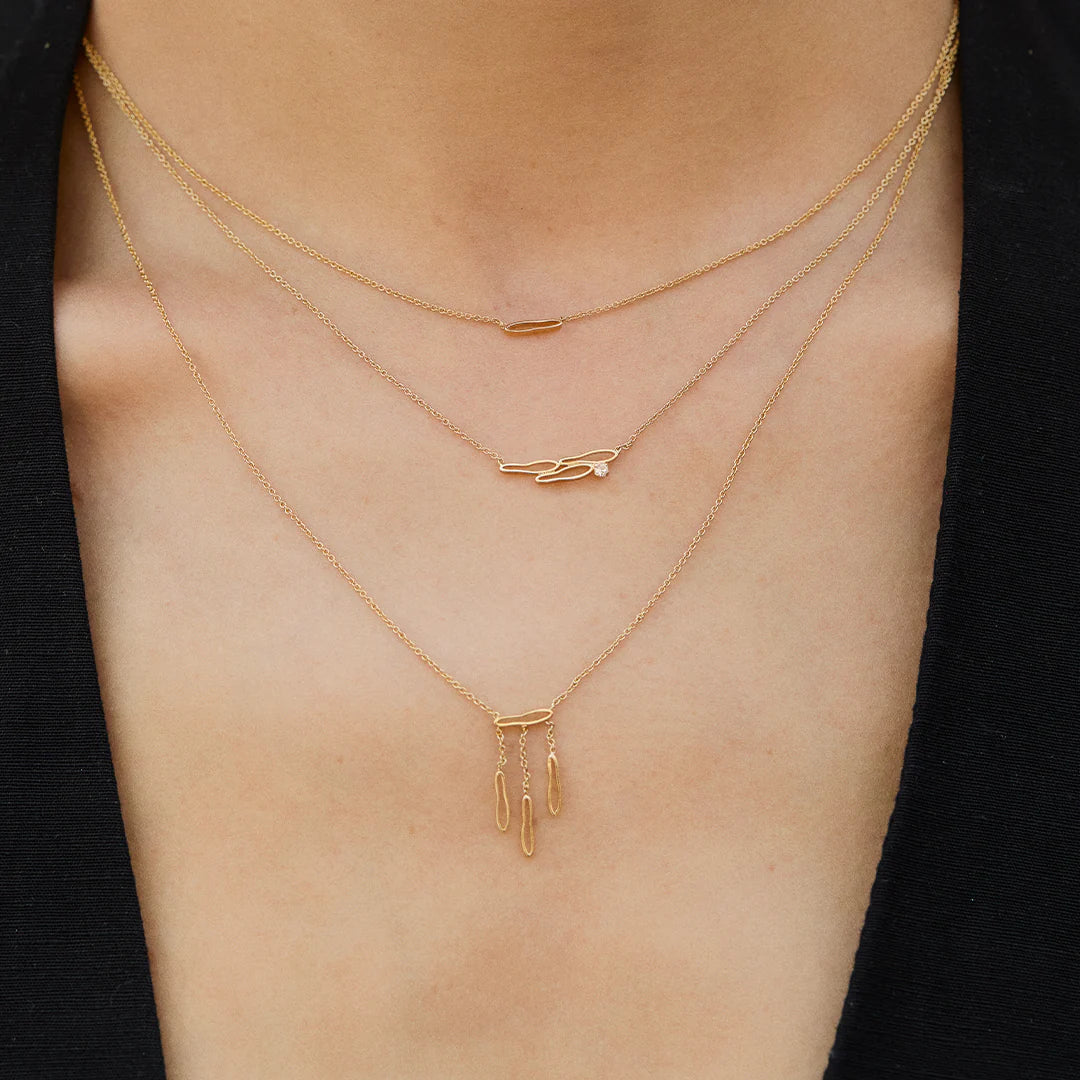 Le collier Rivage évoque la douceur des vagues et l’harmonie de la nature. Son pendentif fluide et organique reflète le mouvement de l’eau, symbole de liberté et de légèreté. Fin et délicatement doré, il habille le cou avec une élégance naturelle, parfaite pour sublimer chaque instant du quotidien.