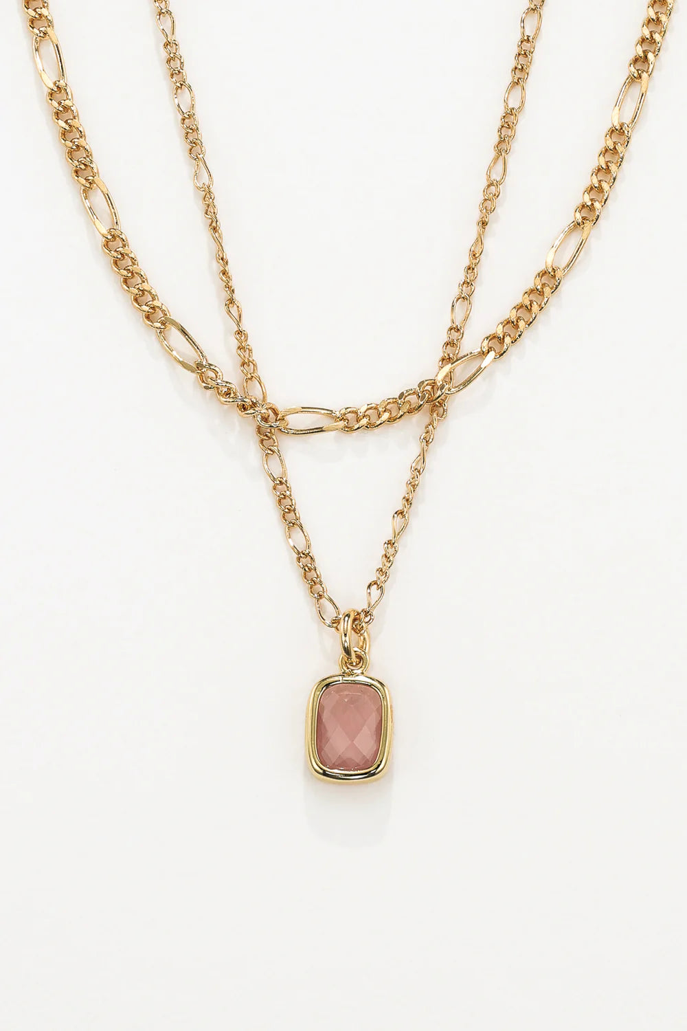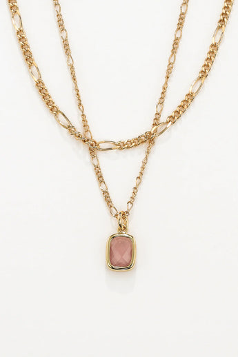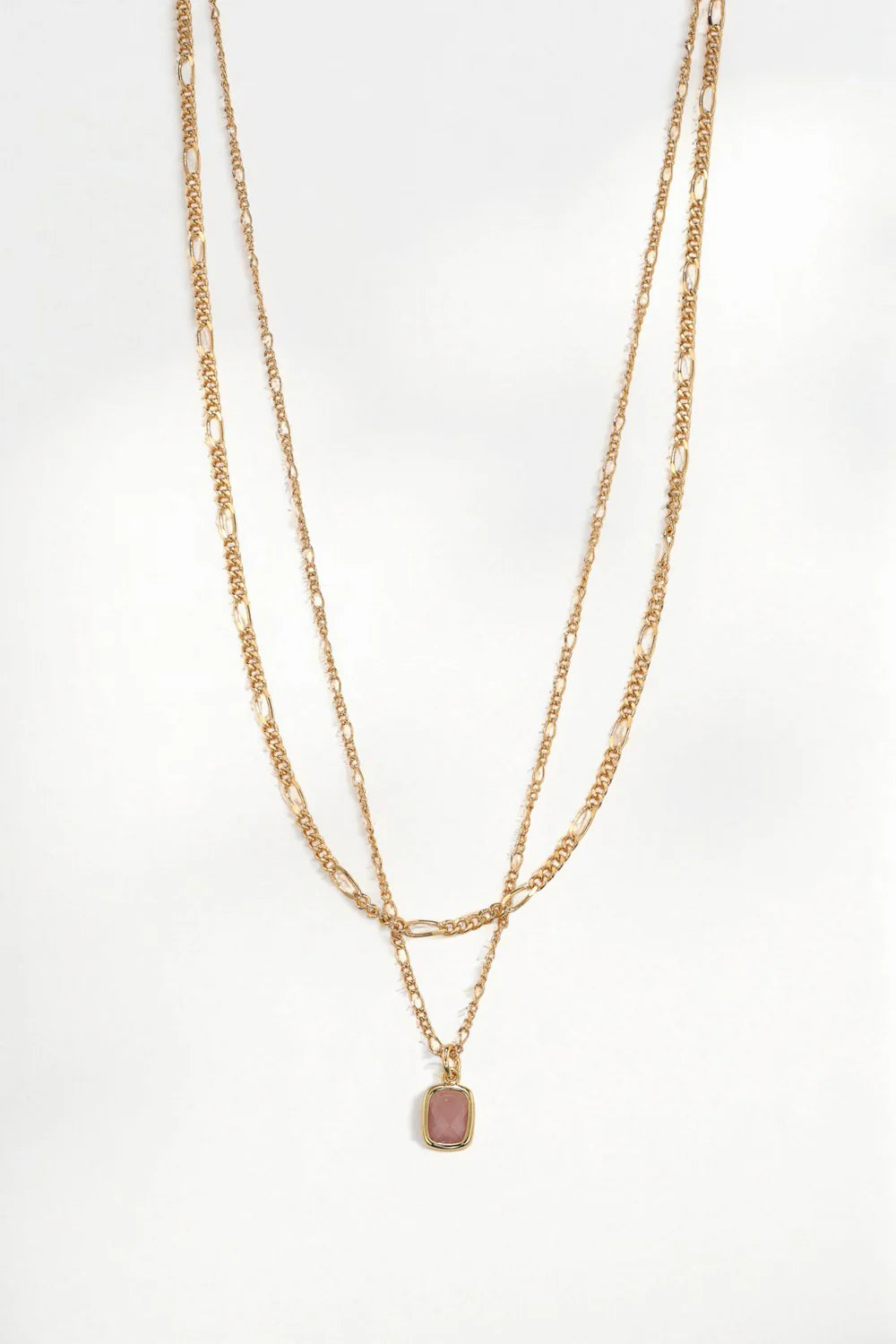 Un bijou empreint de douceur et de féminité. Le collier Romy séduit par son design double rang : deux chaînes délicatement dorées, ornées d’un pendentif rectangulaire à la pierre rose lumineuse. Un mélange parfait entre modernité et romantisme, idéal pour habiller votre décolleté d’une touche de couleur subtile.