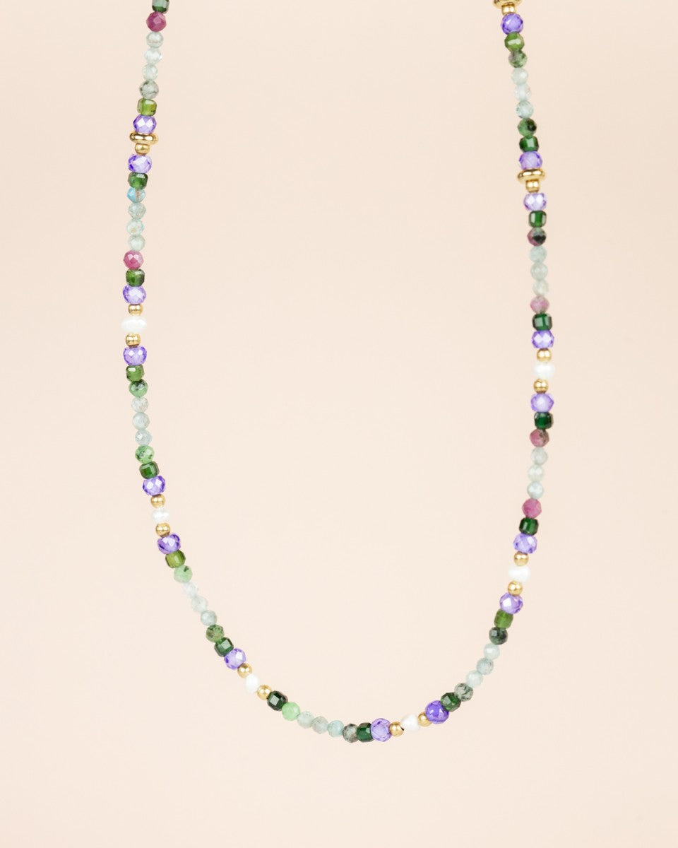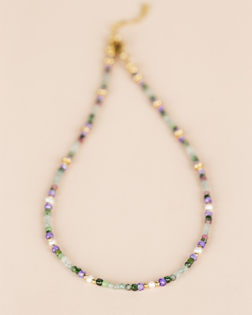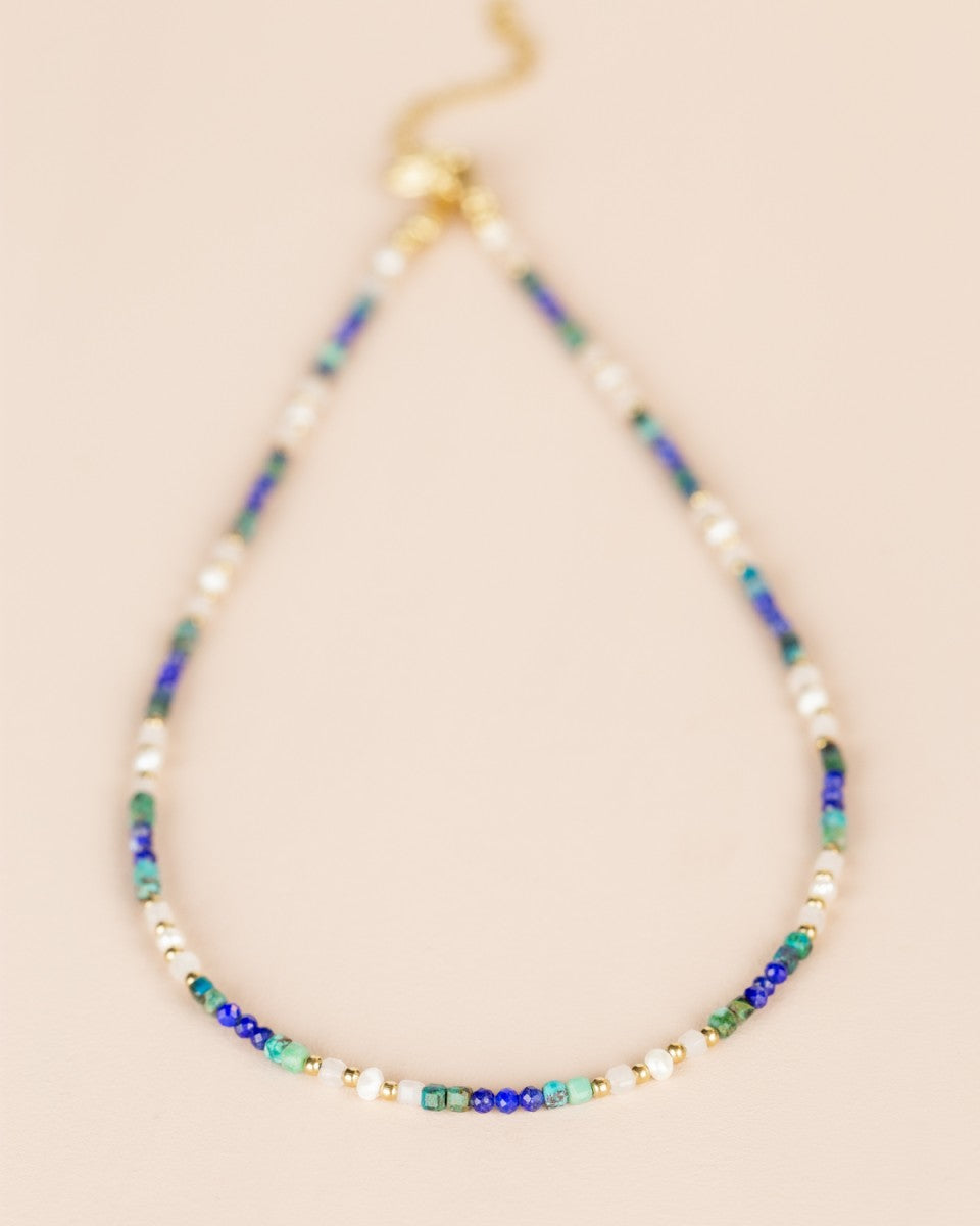 Collier ajustable sublimé de véritables pierres précieuses. Allie confort et élégance dans un design intemporel.