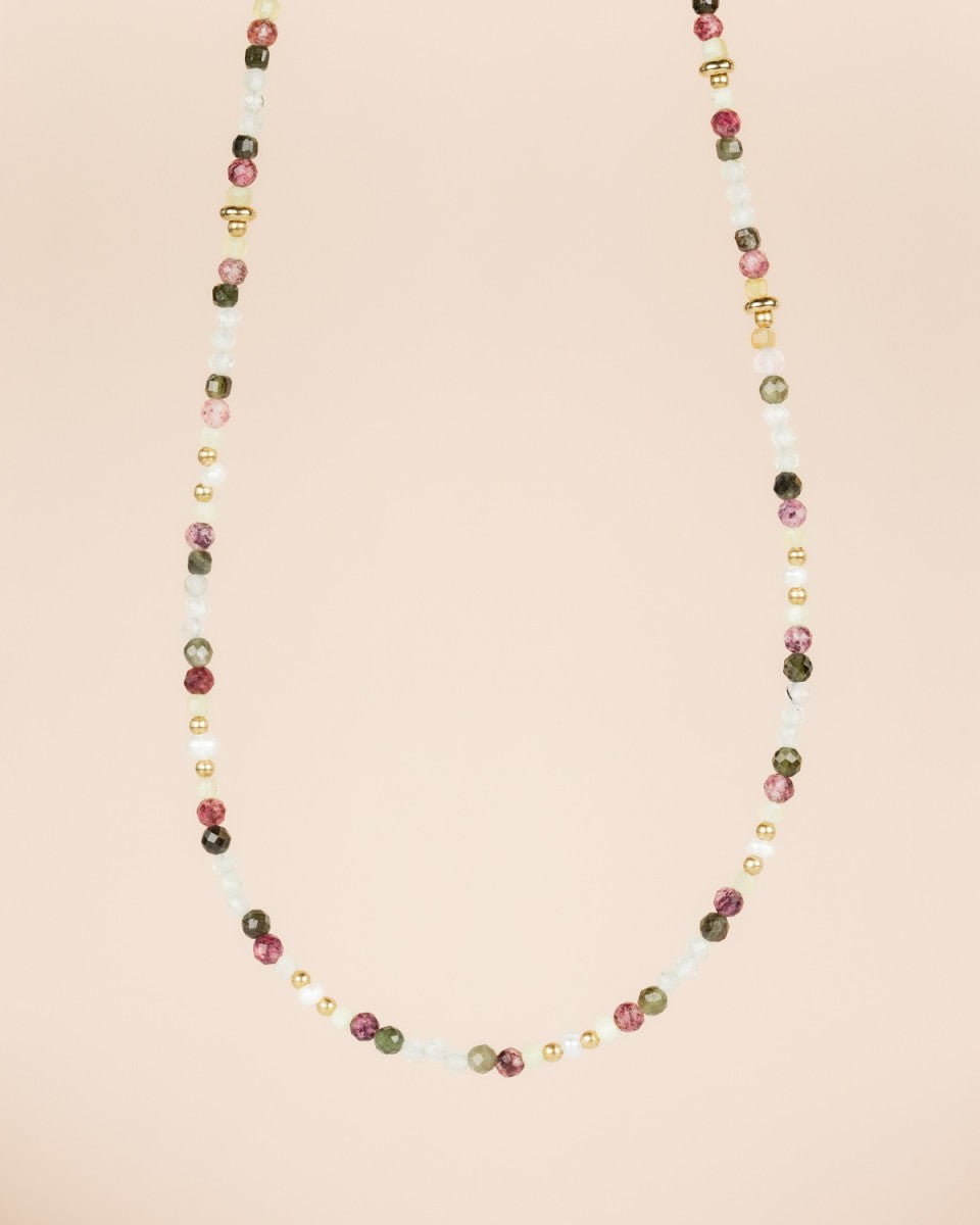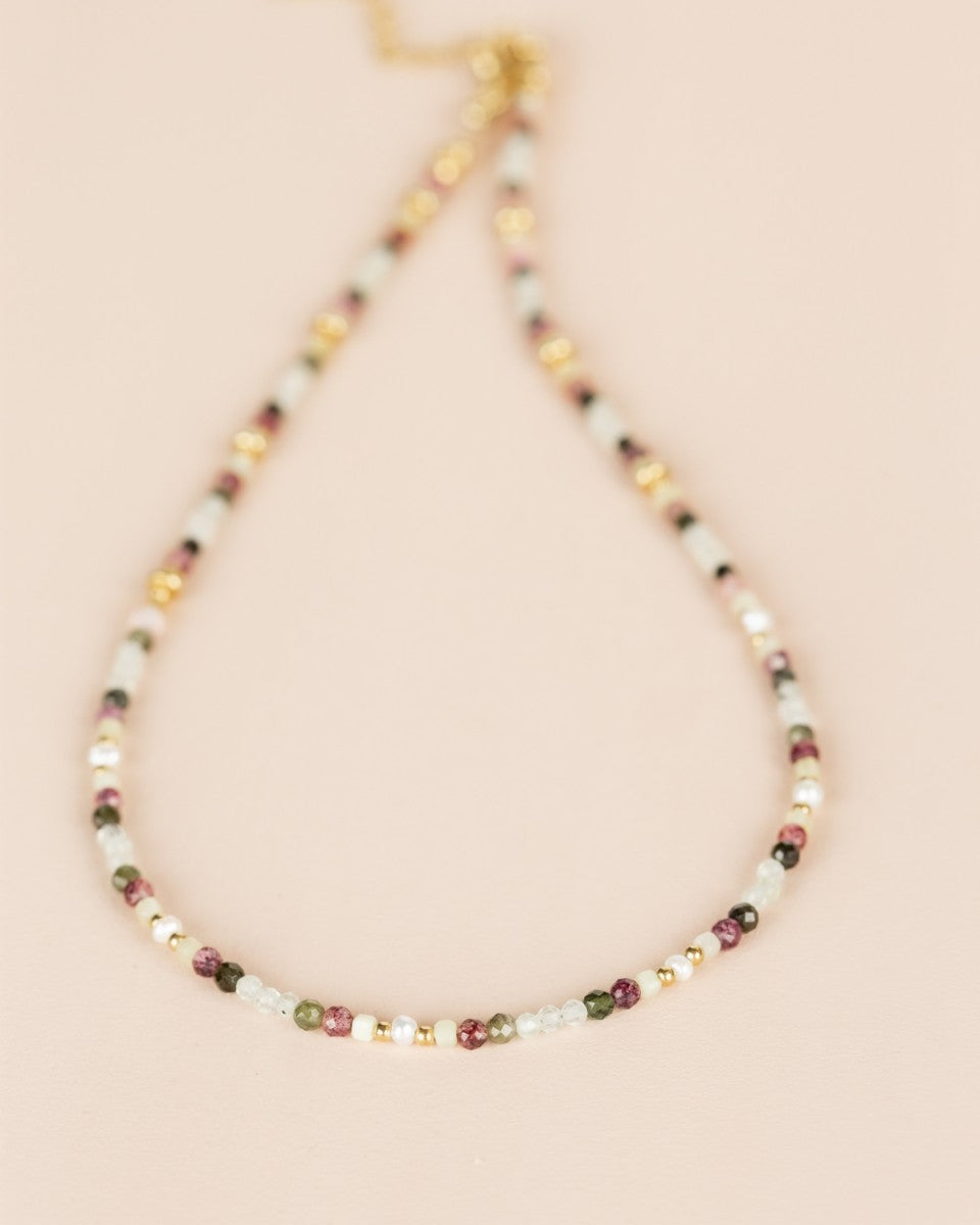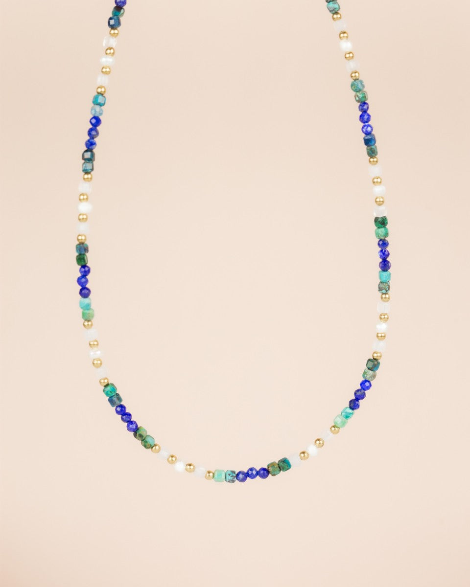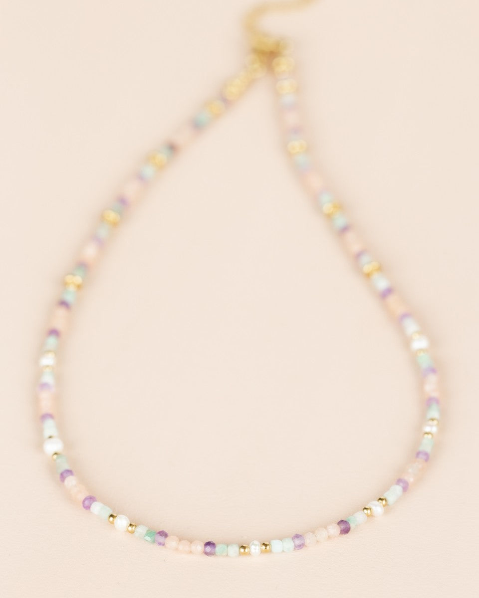 Collier ajustable sublimé de véritables pierres précieuses. Allie confort et élégance dans un design intemporel.