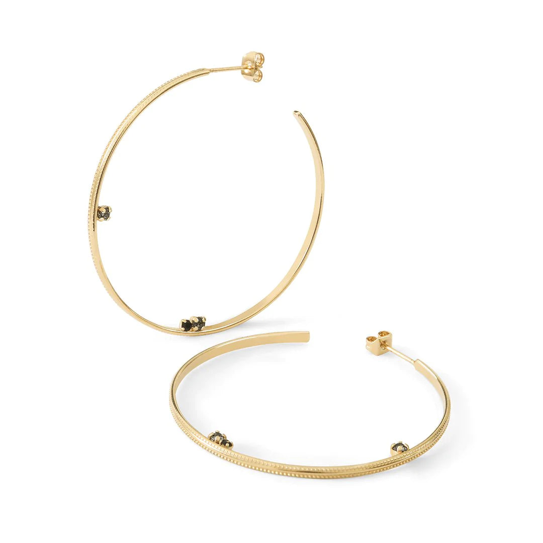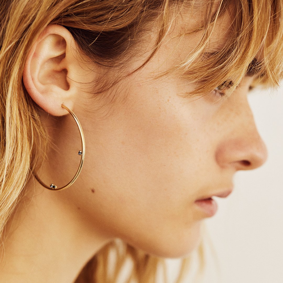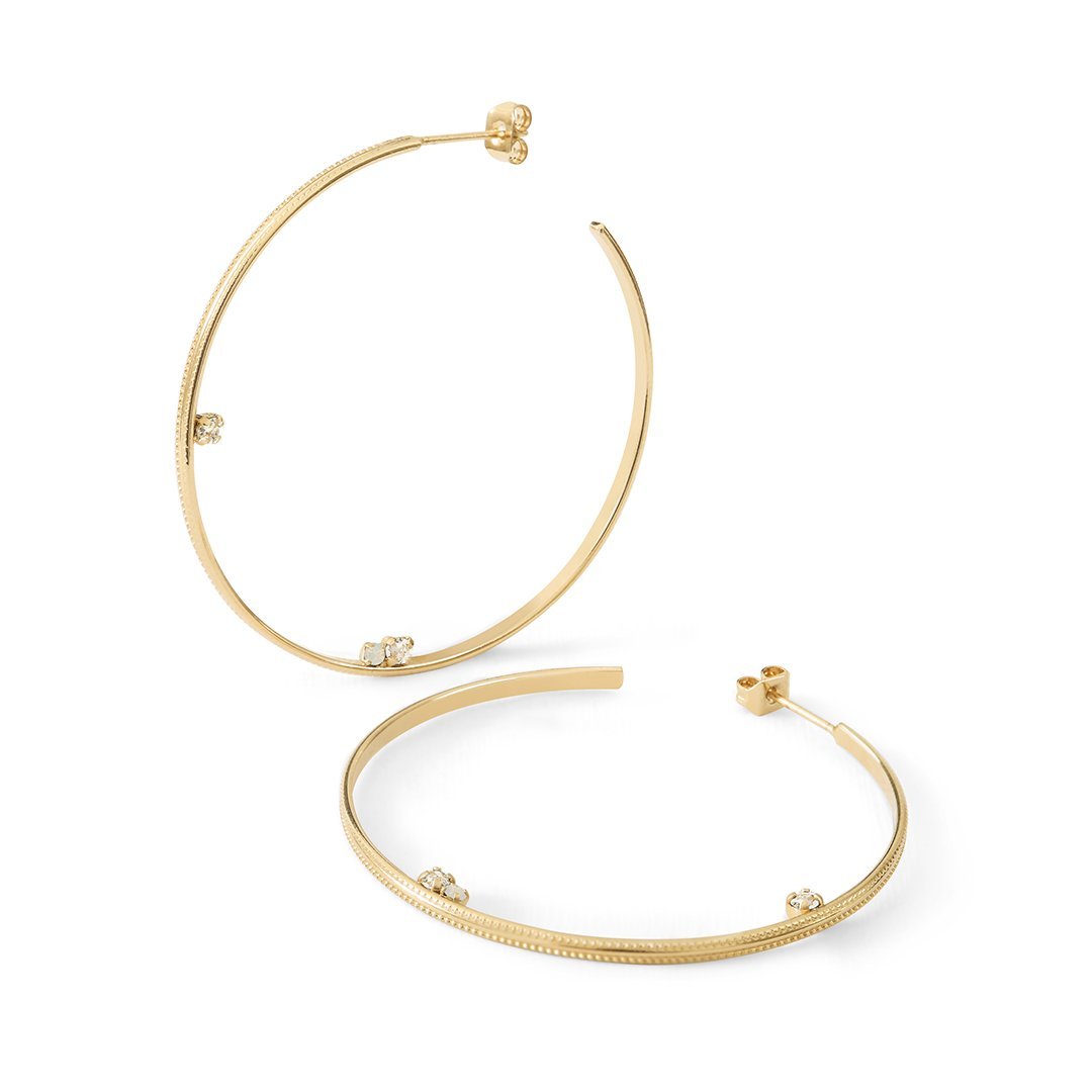 Paire de boucles d’oreilles créoles dorées à l'or fin avec strass Swarovski.