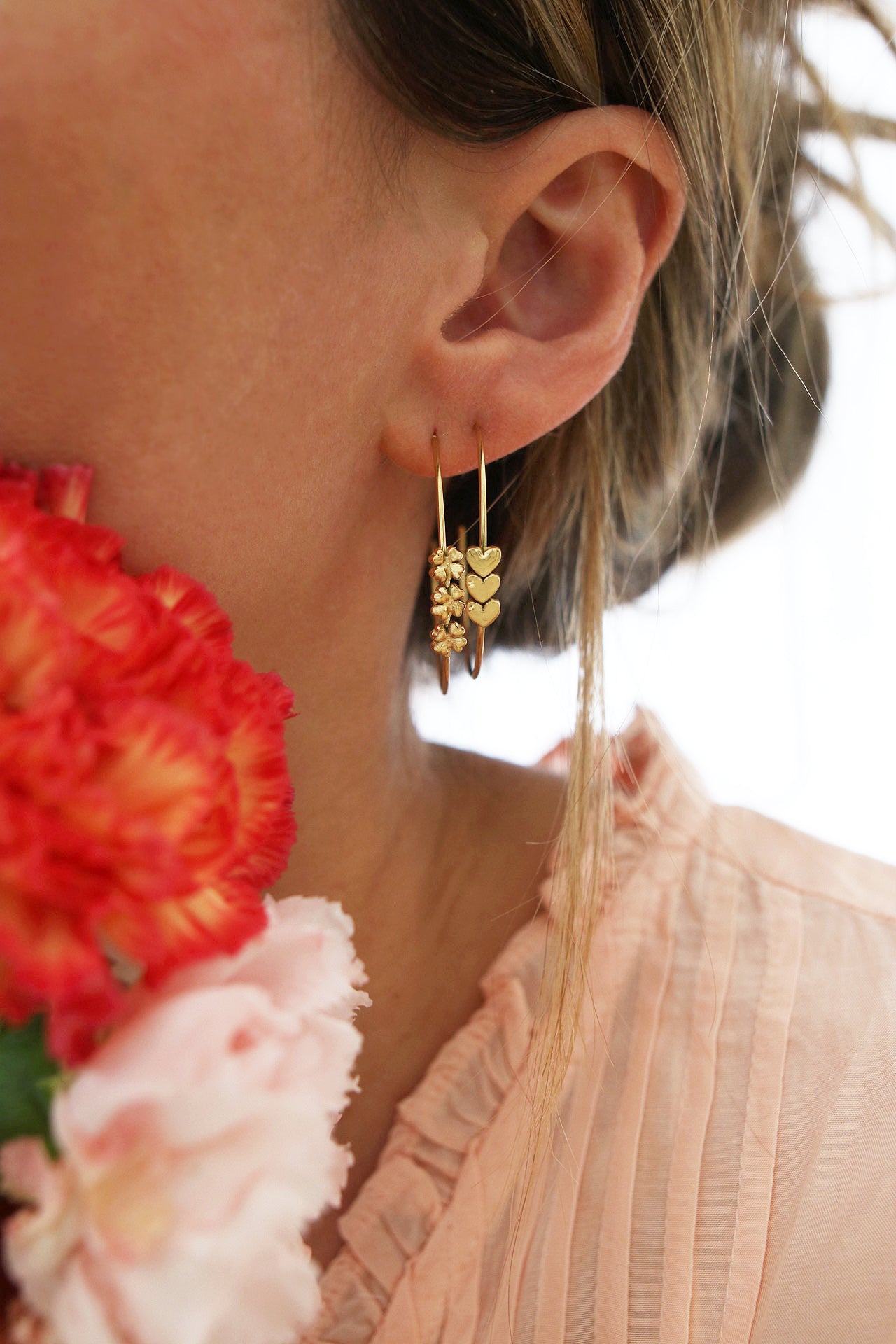 Sur la photo portée, le mannequin porte également les créoles Puebla.
