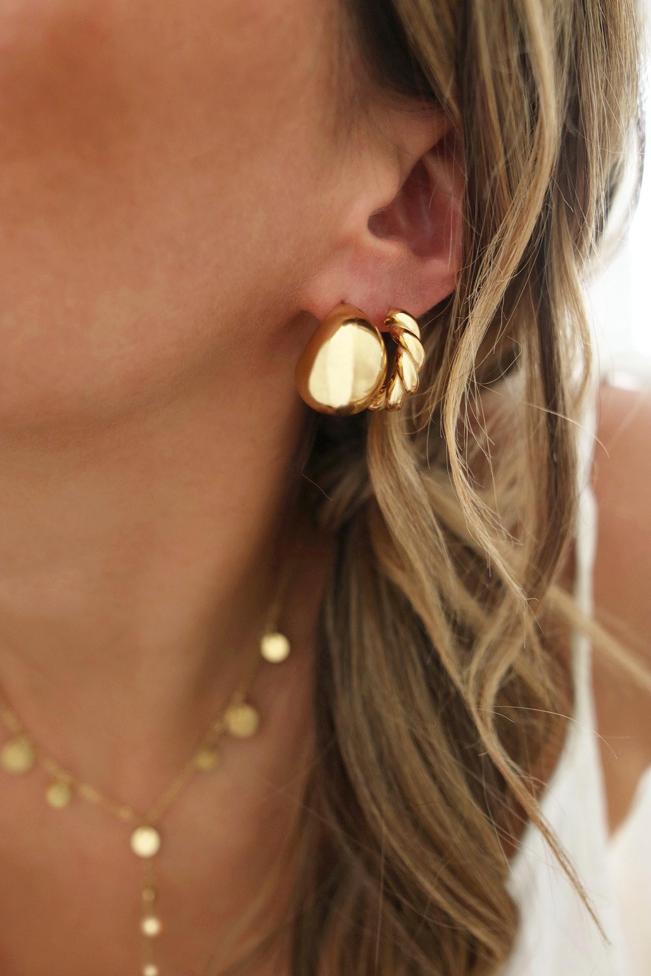 Sur la photo portée, le mannequin porte également les boucles d'oreilles Sandy.