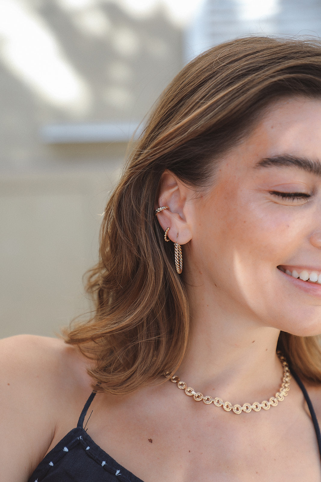 Découvrez nos boucles Aria et leur motif torsadé pour un modèle classique à porter tous les jours.