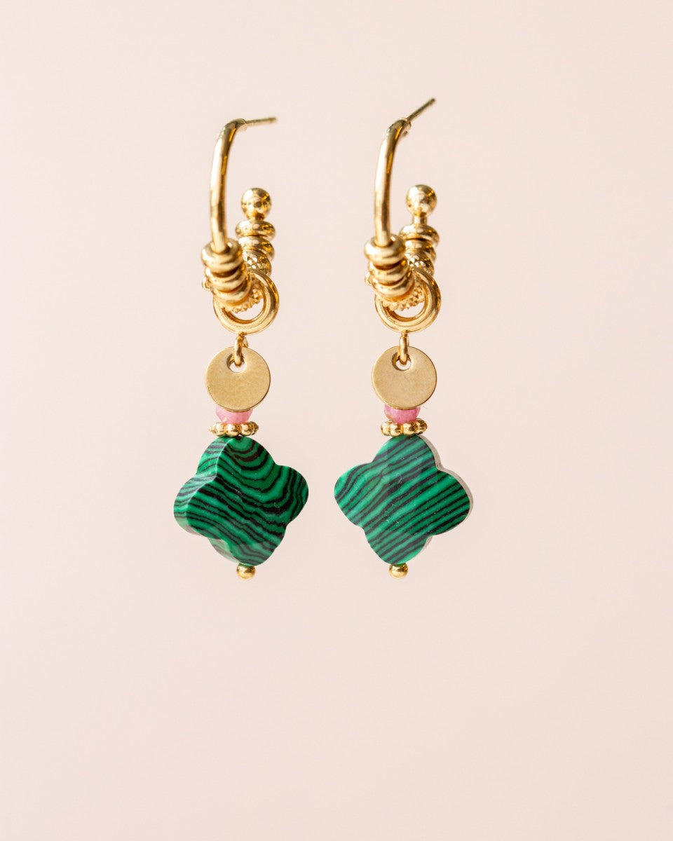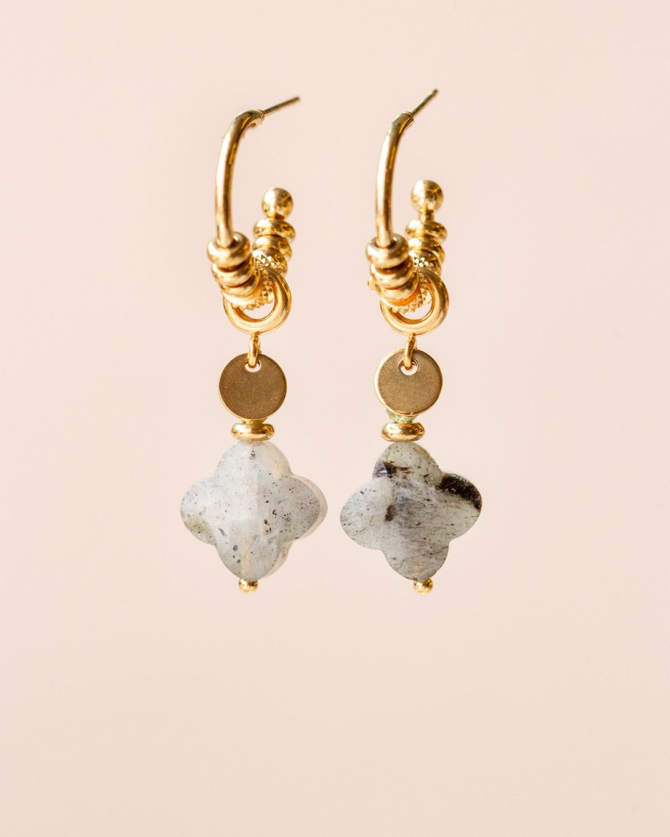 Créoles avec une trèfle remplie des pierres précieuses mixtes
