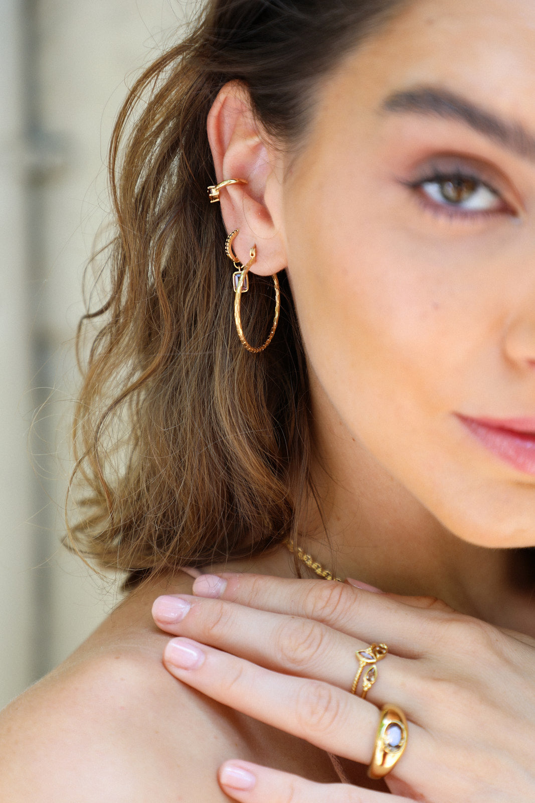 Découvrez nos boucles Ayla et leur joli trame aux motifs géométriques.