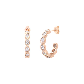 Les créoles Liv allient élégance intemporelle et éclat raffiné. En doré rosé lumineux, elles sont ornées de pierres en forme de gouttes délicatement serties, qui captent la lumière à chaque mouvement. Un bijou sophistiqué, idéal pour sublimer vos tenues du quotidien comme vos soirées.