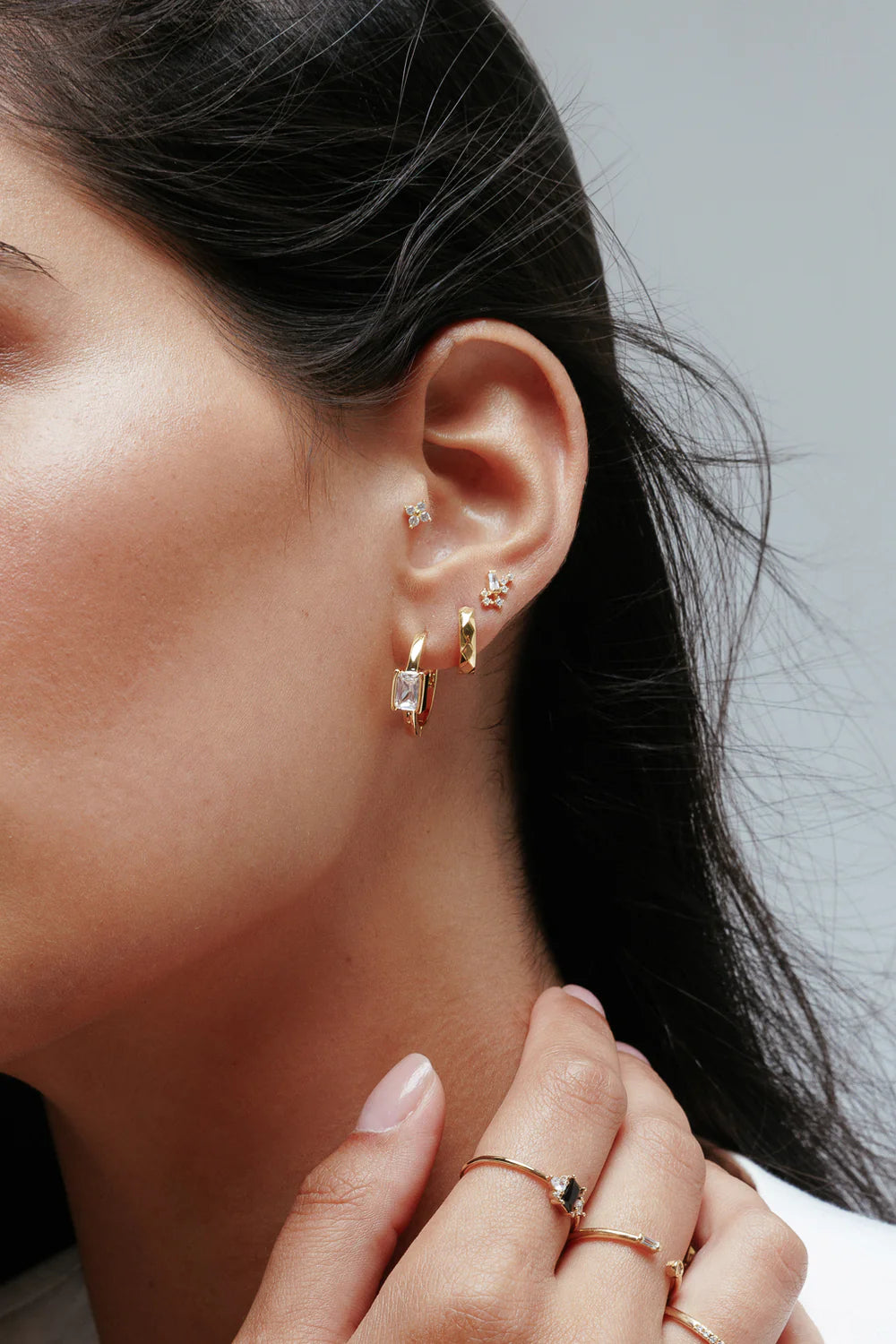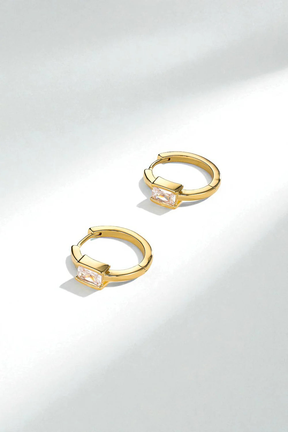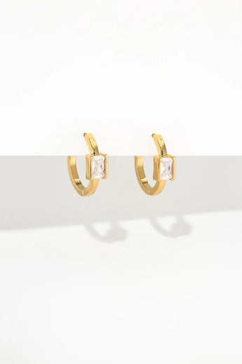 Minimalistes et éclatantes, les créoles Romy se distinguent par leur ligne pure et leur pierre rectangulaire facettée qui capte la lumière avec élégance. Leur design épuré leur confère une allure contemporaine et intemporelle, parfaite pour sublimer le quotidien comme les soirées les plus chics.