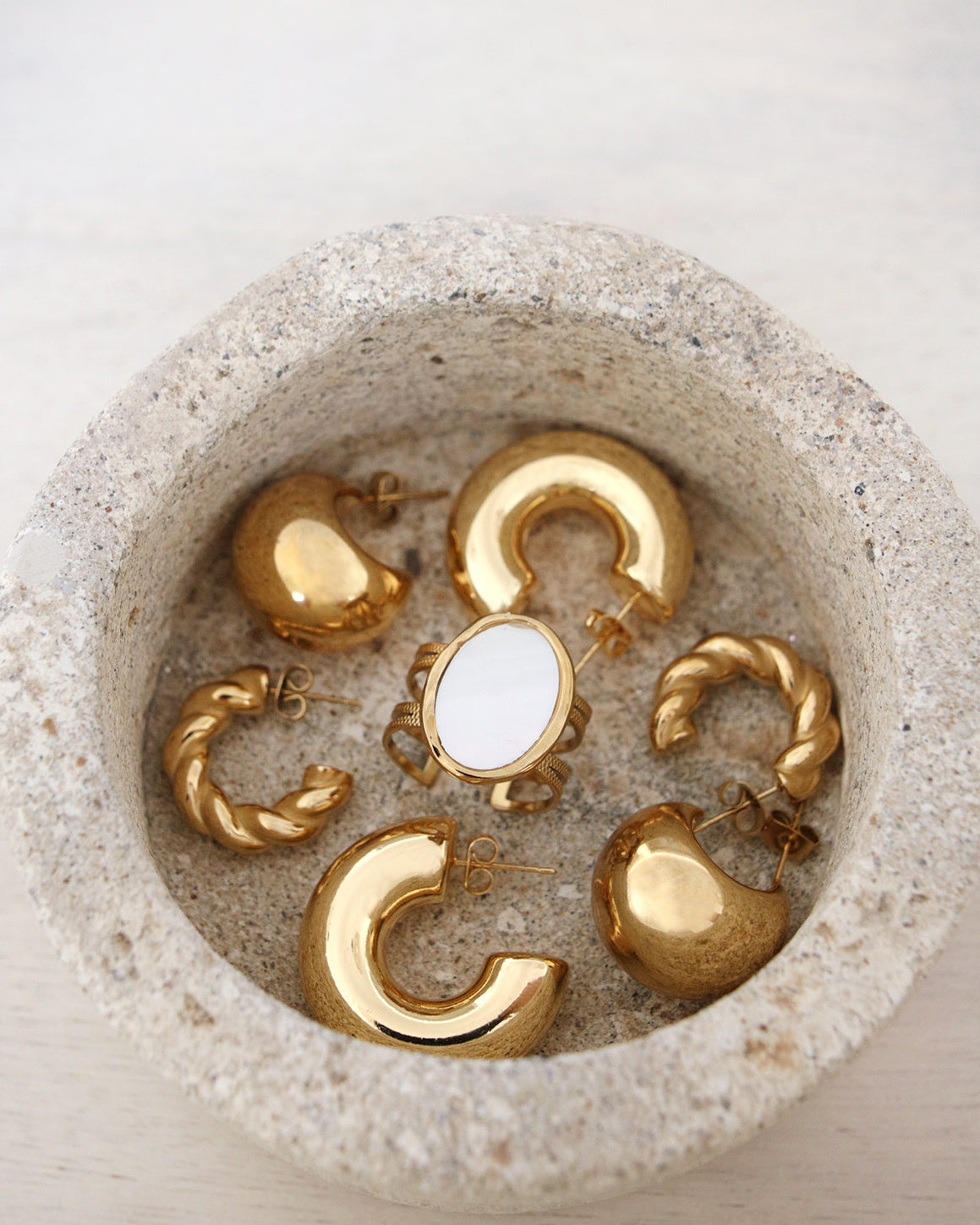 Une marque dans l'air du temps, des bijoux intemporels, toujours en plaqué or, qui résistent à la vie. Une collection pensée pour être accumulée. A offrir ou pour se faire plaisir.
