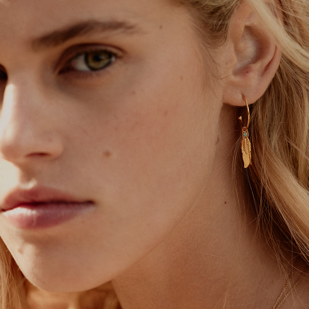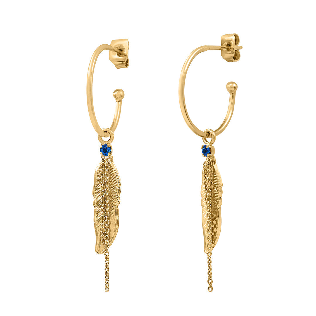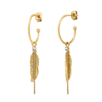 Créoles fines avec un pendentif en forme de plume et un cristal Swarovski.