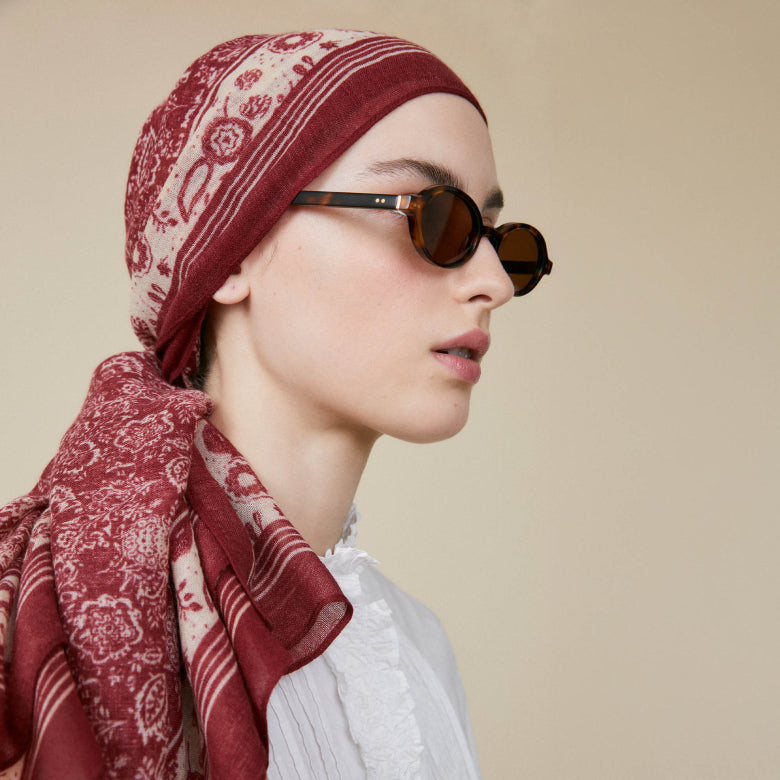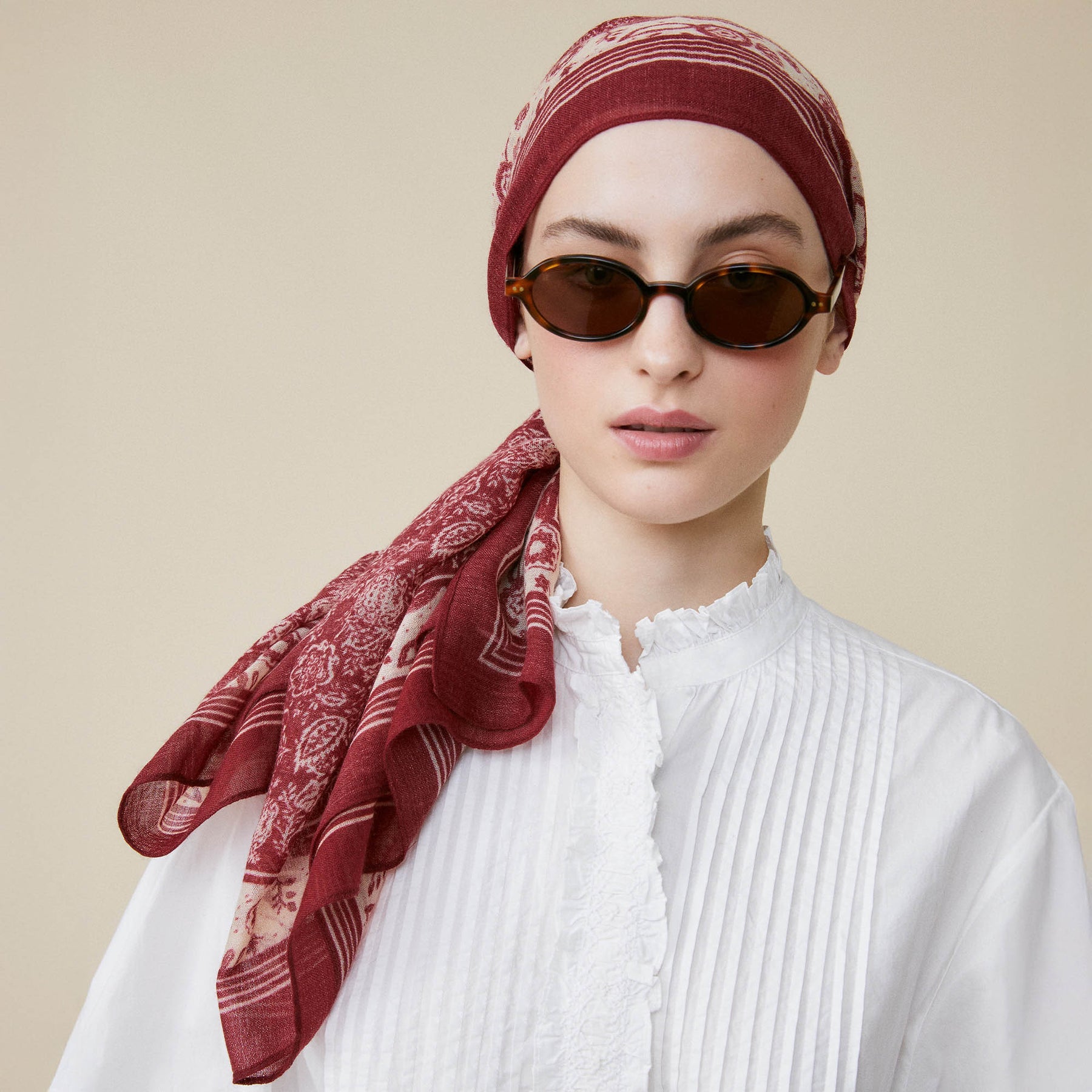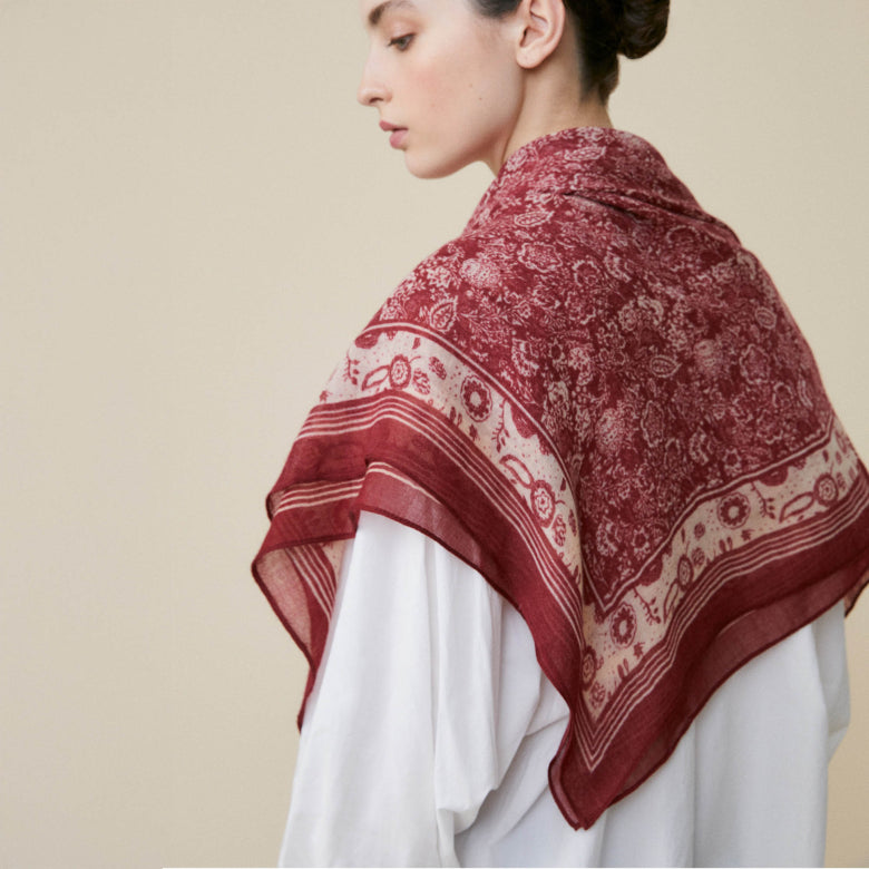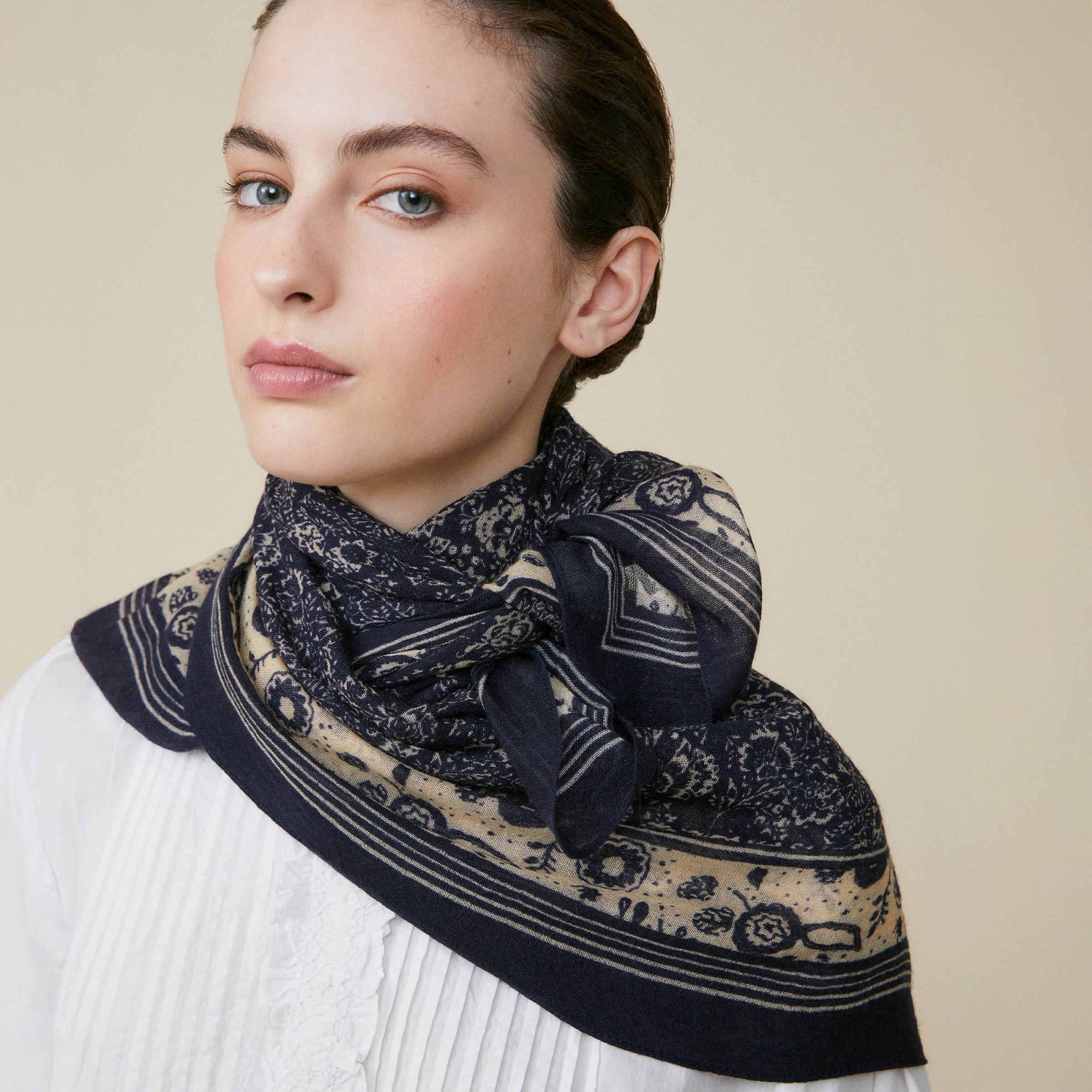 Maxi carré tissé en toile de laine imprimé exclusif.