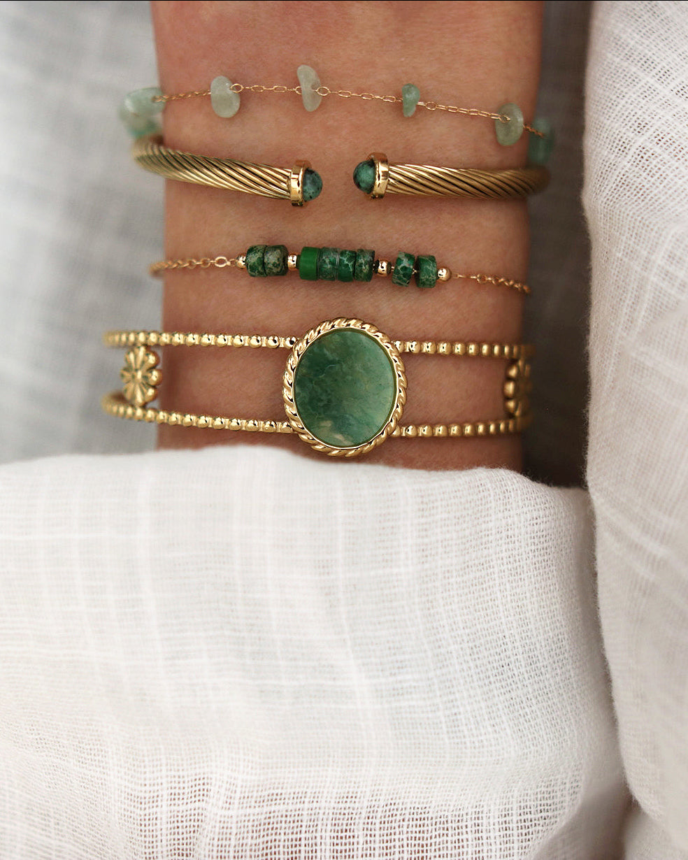 Sur la photo portée, le mannequin porte également les bracelets Assia et Noura, ainsi que le jonc Safia