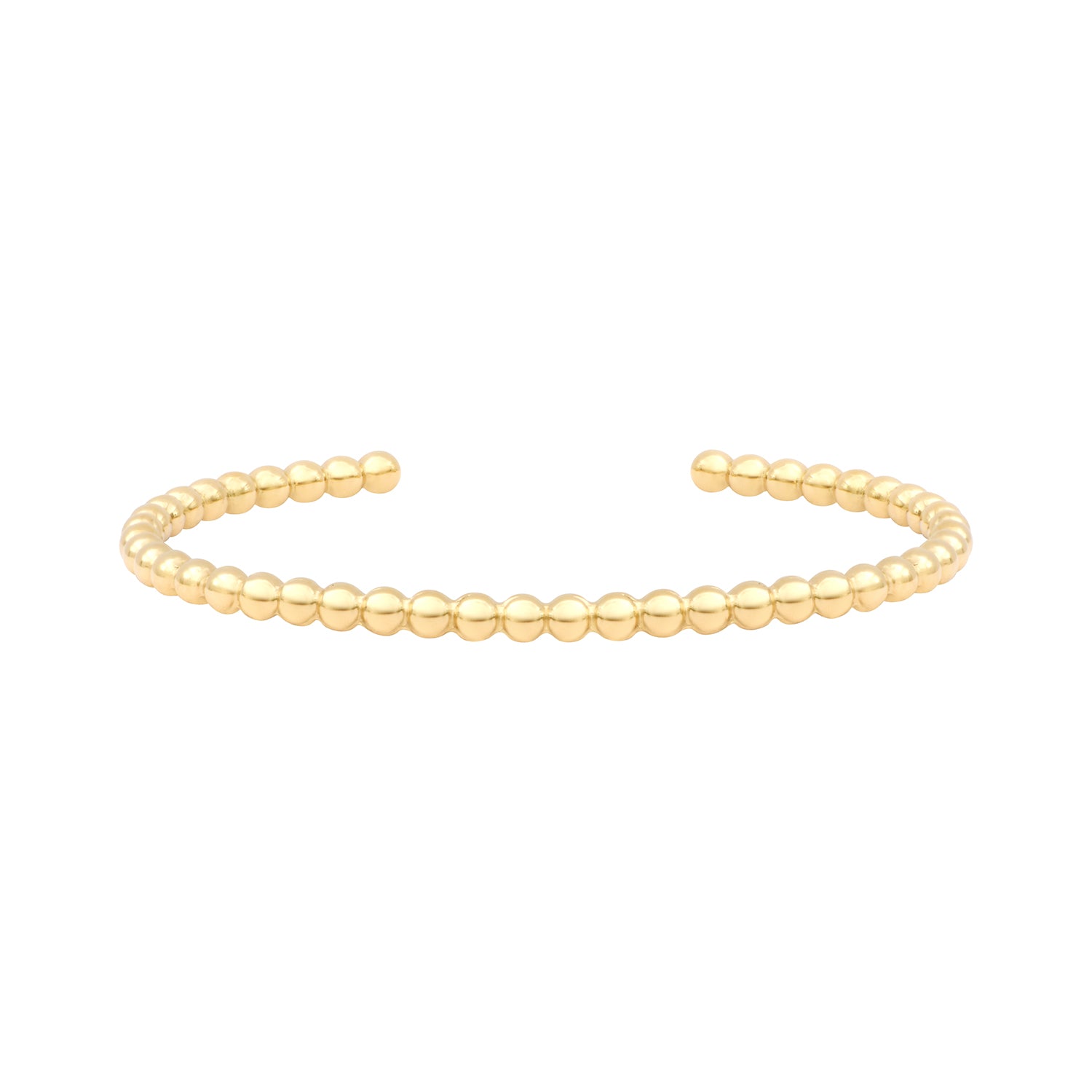 Le jonc Helmi séduit par la finesse de son design perlé, entièrement travaillé en finition dorée. Épuré et élégant, il reflète la lumière avec subtilité et habille le poignet d’un éclat raffiné. Une création intemporelle et versatile, idéale pour être portée seule ou en accumulation, au gré de vos envies.