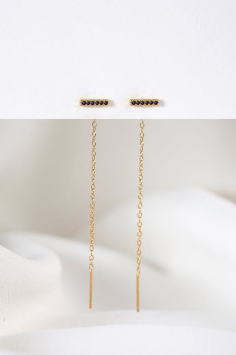 Ces magnifiques boucles d'oreilles Long Tom associent élégance et originalité grâce à leur chaîne avec pierres étincelantes. Un accessoire intemporel qui ajoute une touche de glamour à votre tenue. Faites une déclaration audacieuse avec ces boucles d'oreilles qui font ressortir votre sens du style.