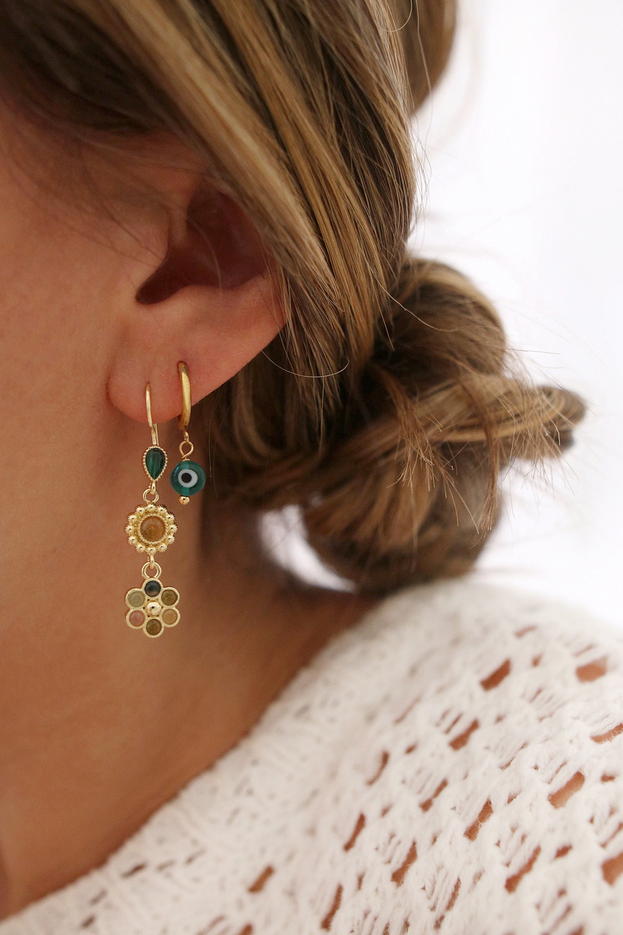 Sur la photo portée, le mannequin porte également les boucles Frida.