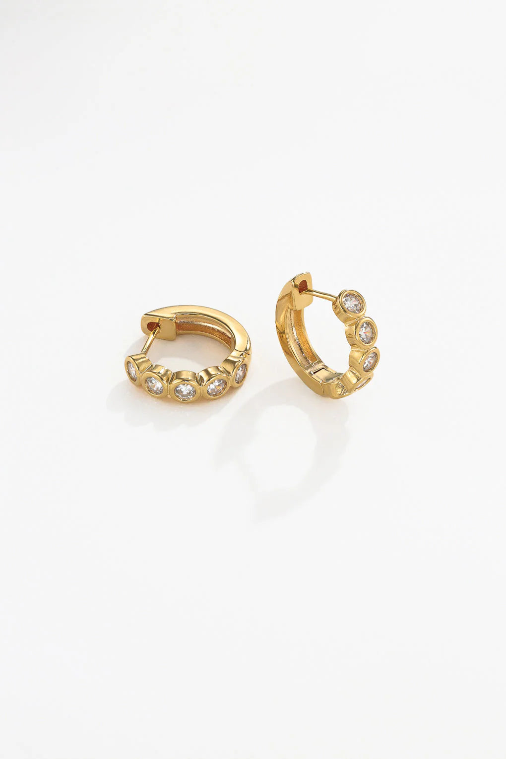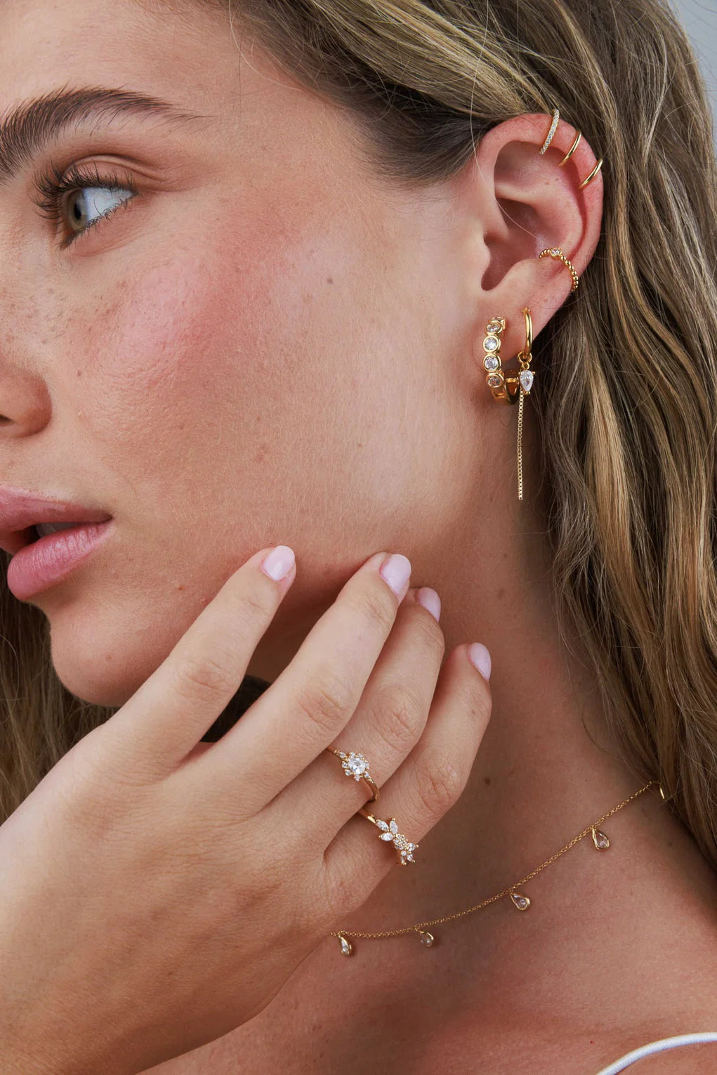 Les mini créoles Andy allient modernité et éclat intemporel. Leur design finement texturé, rehaussé de zircons étincelants, apporte une touche lumineuse à l’oreille tout en conservant une élégance minimaliste. Parfaites pour le quotidien, elles se portent seules pour un look épuré ou en accumulation pour plus de caractère.