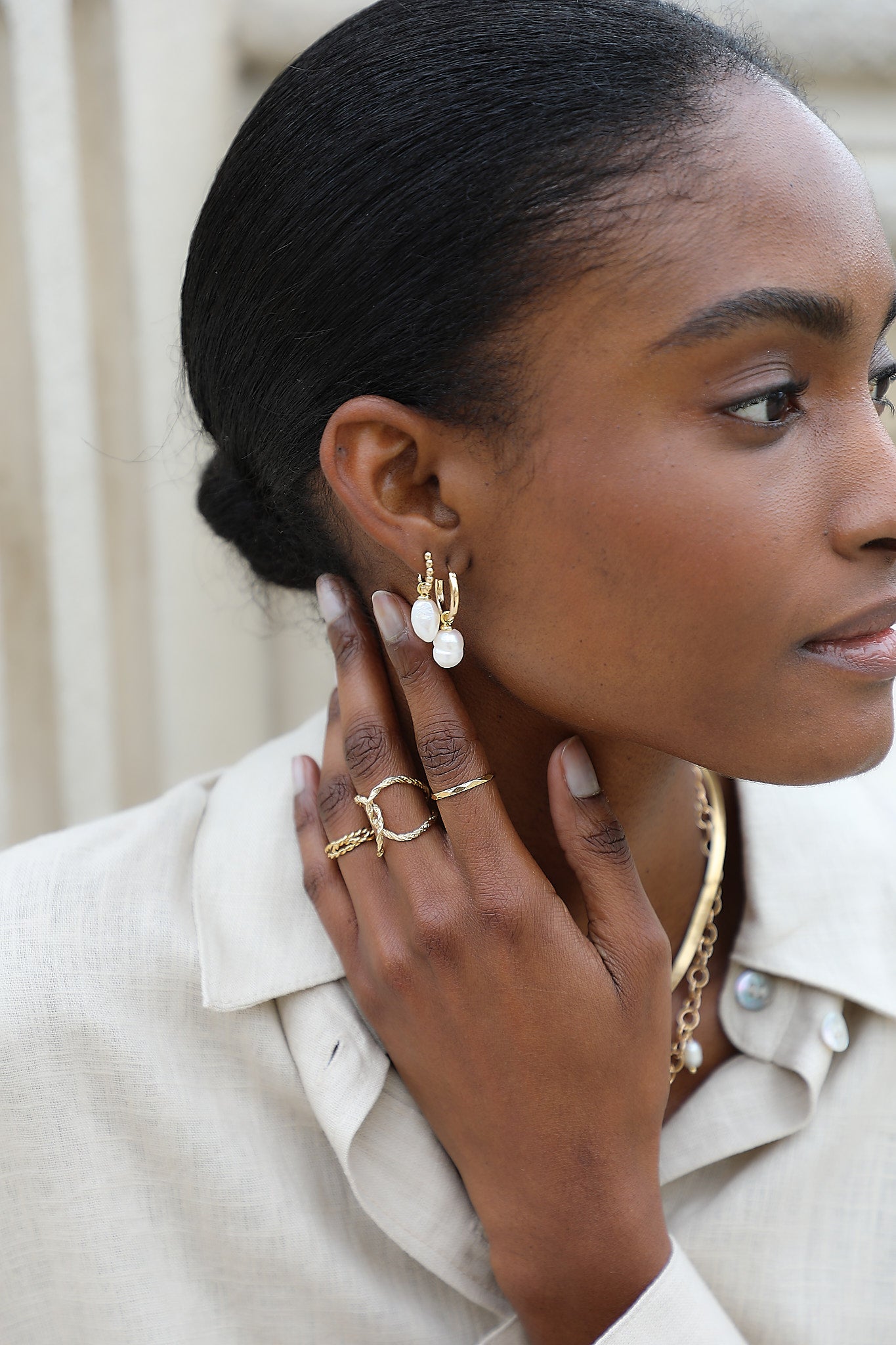 Sur la photo portée, le mannequin porte également les mini créoles Fany.