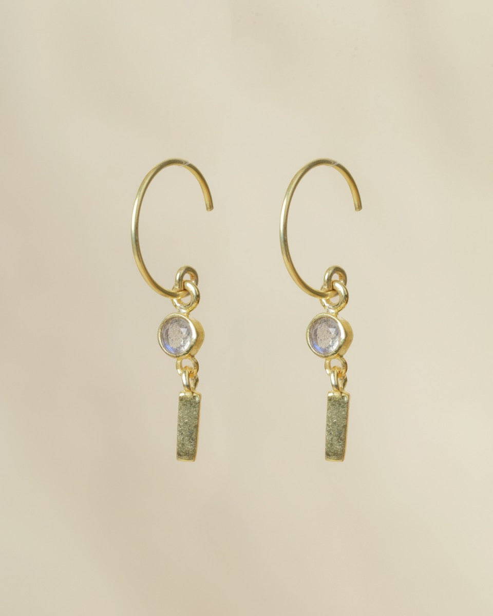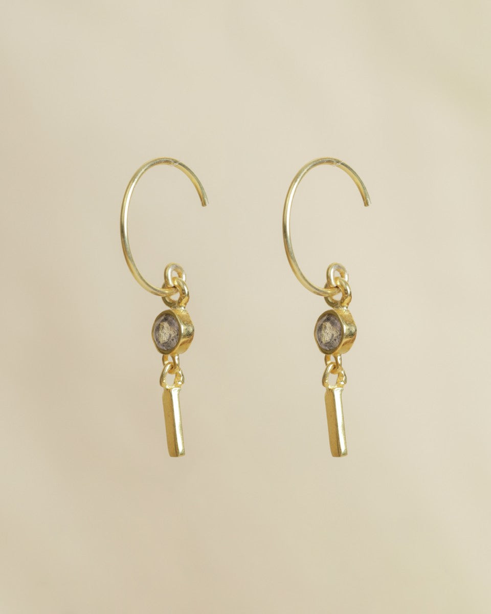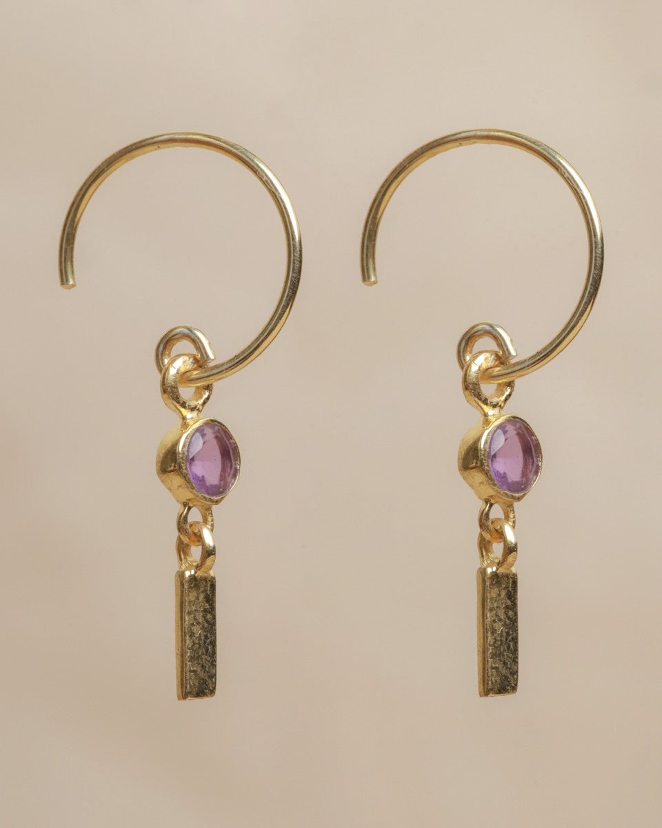 Les mini-créoles Lizza allient délicatesse et caractère. Leur pierre violette lumineuse, suspendue à un pendentif doré texturé, reflète une élégance à la fois douce et affirmée. Un bijou raffiné et intemporel, parfait pour apporter une touche de couleur et de féminité à votre style.