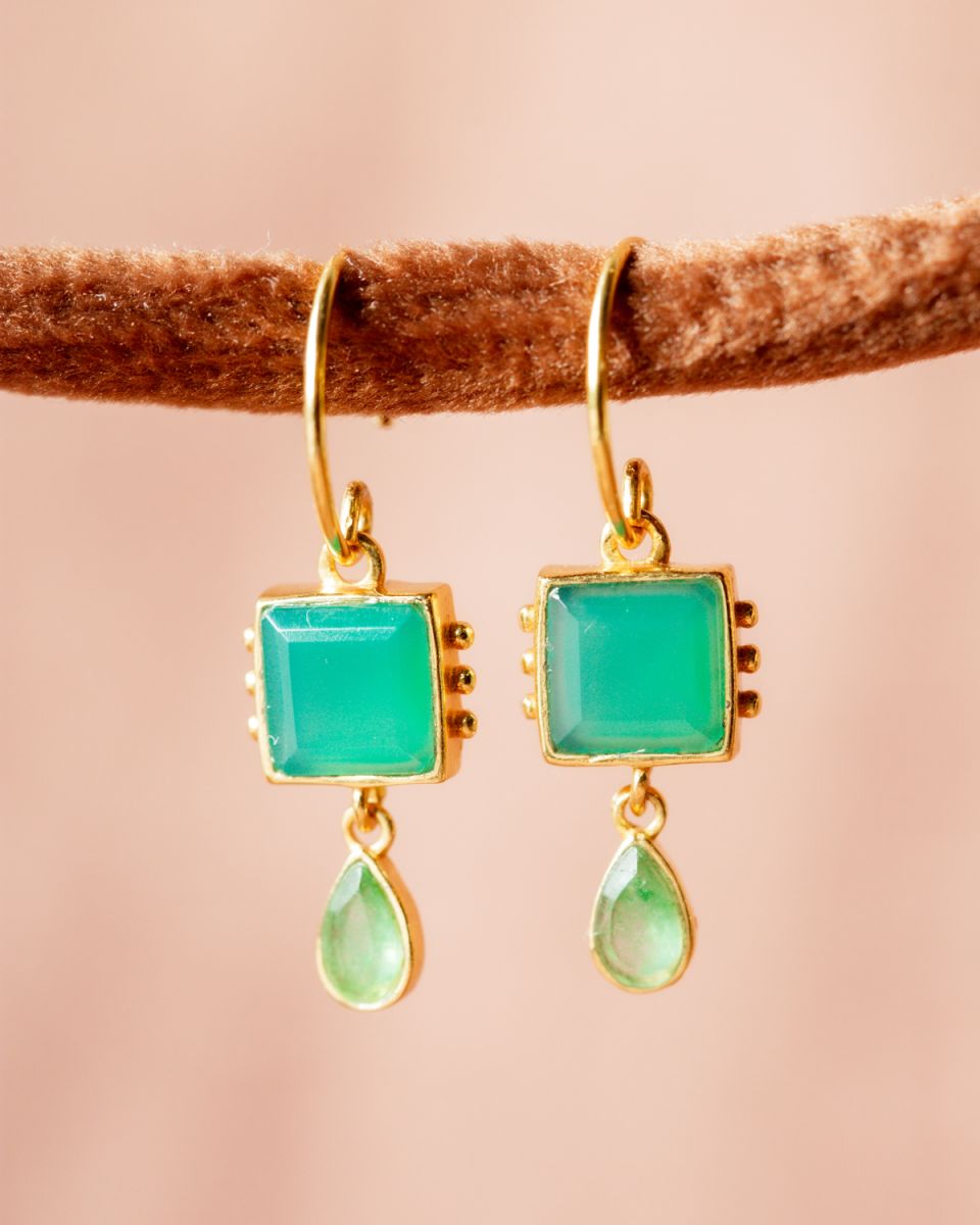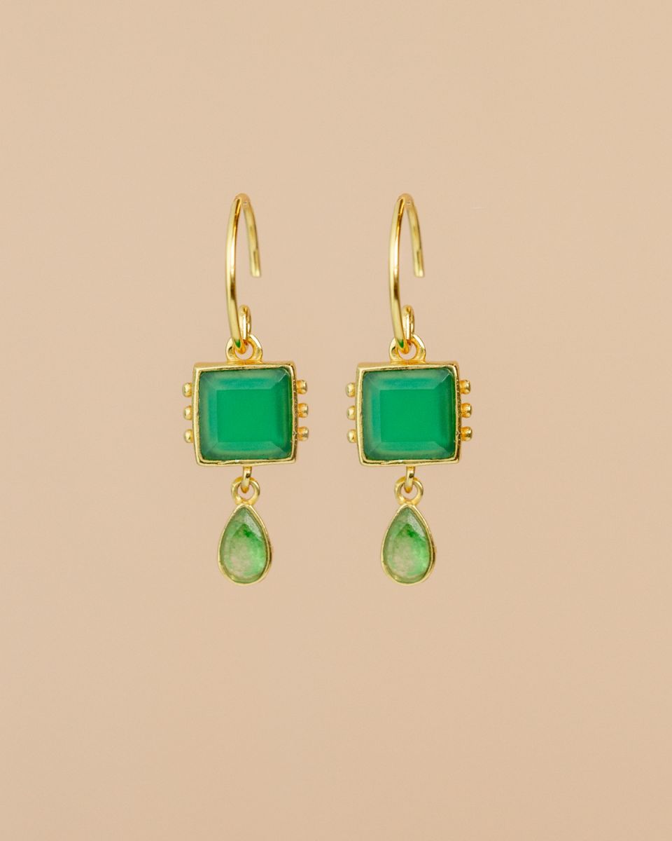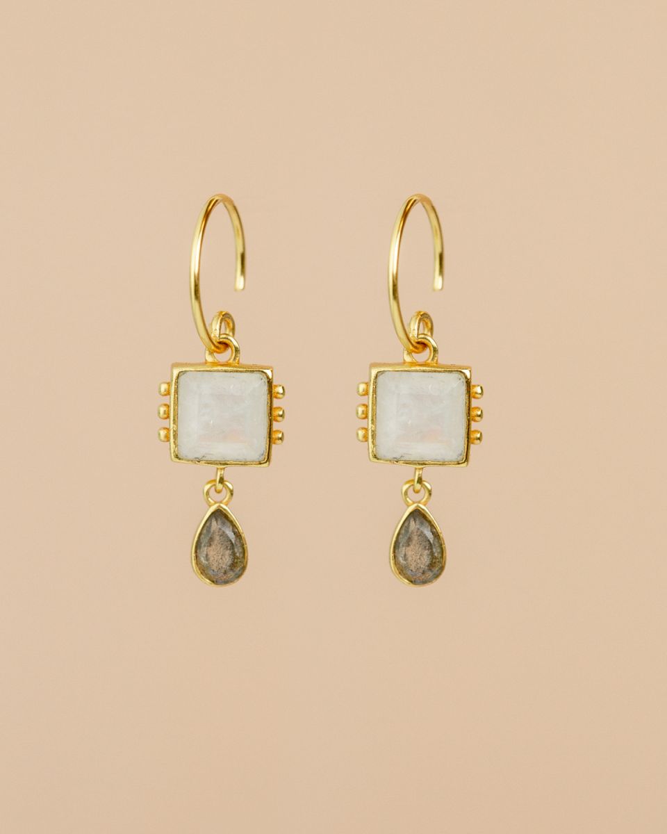 Les mini-créoles Lyra évoquent la lueur douce des constellations nocturnes. Leur monture dorée met en scène un duo harmonieux de pierres lumineuses : une baguette aux reflets profonds surmontée d’une goutte nacrée délicate. Élégantes et subtiles, elles apportent une touche d’éclat discret et raffiné à chaque mouvement. Un bijou céleste qui mêle finesse et mystère.