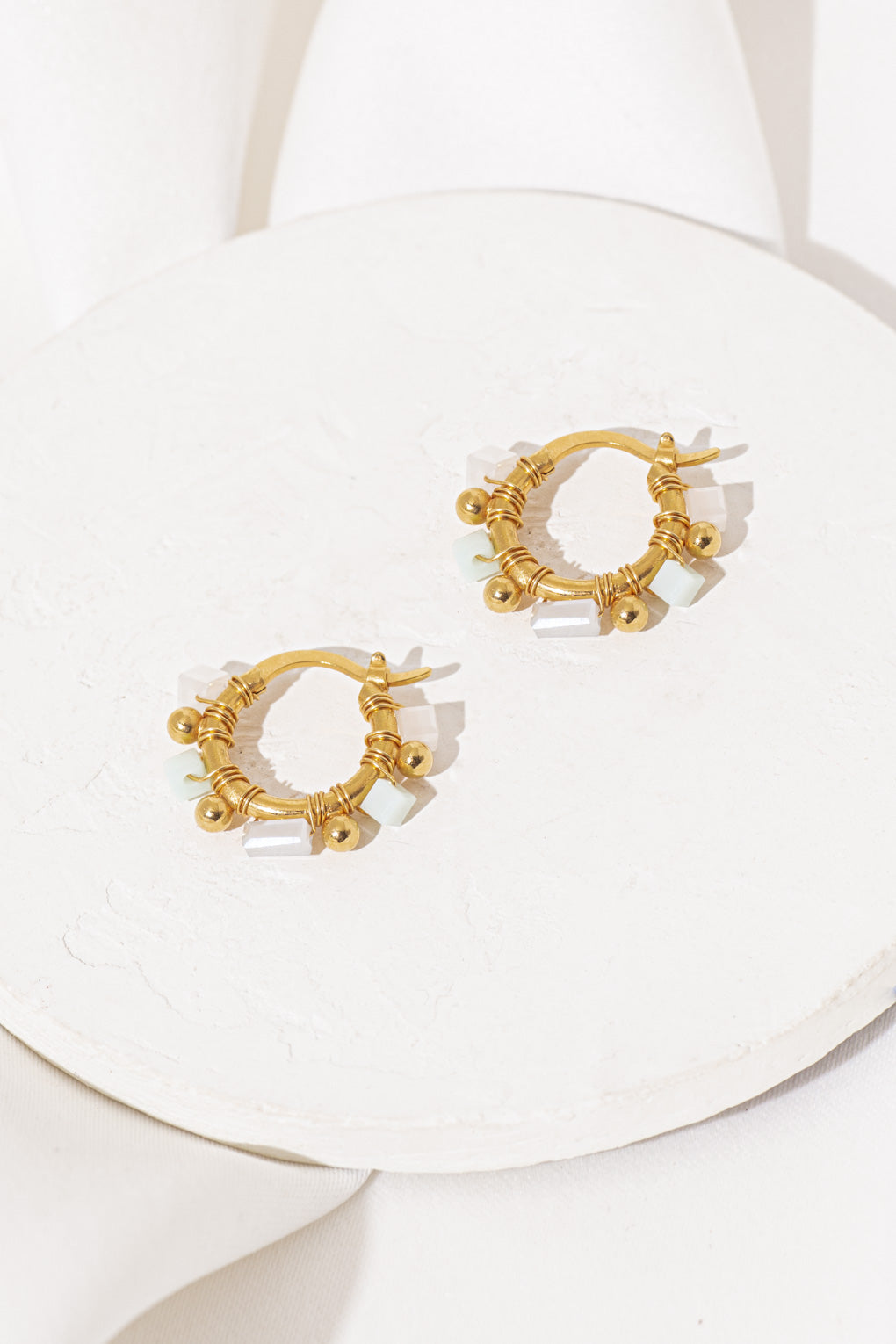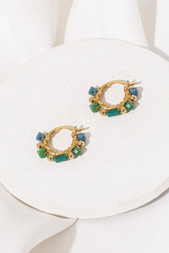 Les mini créoles Sherry Dorées attirent tous les regards grâce à leur design unique. Leur alliance élégante de métal doré et de perles de verre finement tissées apporte une touche délicate et raffinée à votre style. Faciles à porter au quotidien, elles subliment discrètement vos tenues tout en vous offrant une allure sophistiquée et pleine de charme. Un choix parfait pour celles qui aiment se démarquer avec élégance.