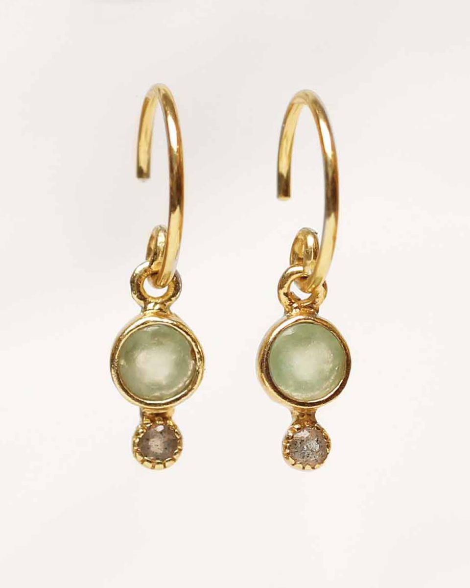 Les mini-créoles Pita séduisent par leur charme délicat et leurs contrastes harmonieux. Leur duo de pierres, vert d’eau et rose profond, capte la lumière et révèle une élégance subtile. Un bijou raffiné et coloré, parfait pour illuminer le visage d’une touche de douceur et de modernité.