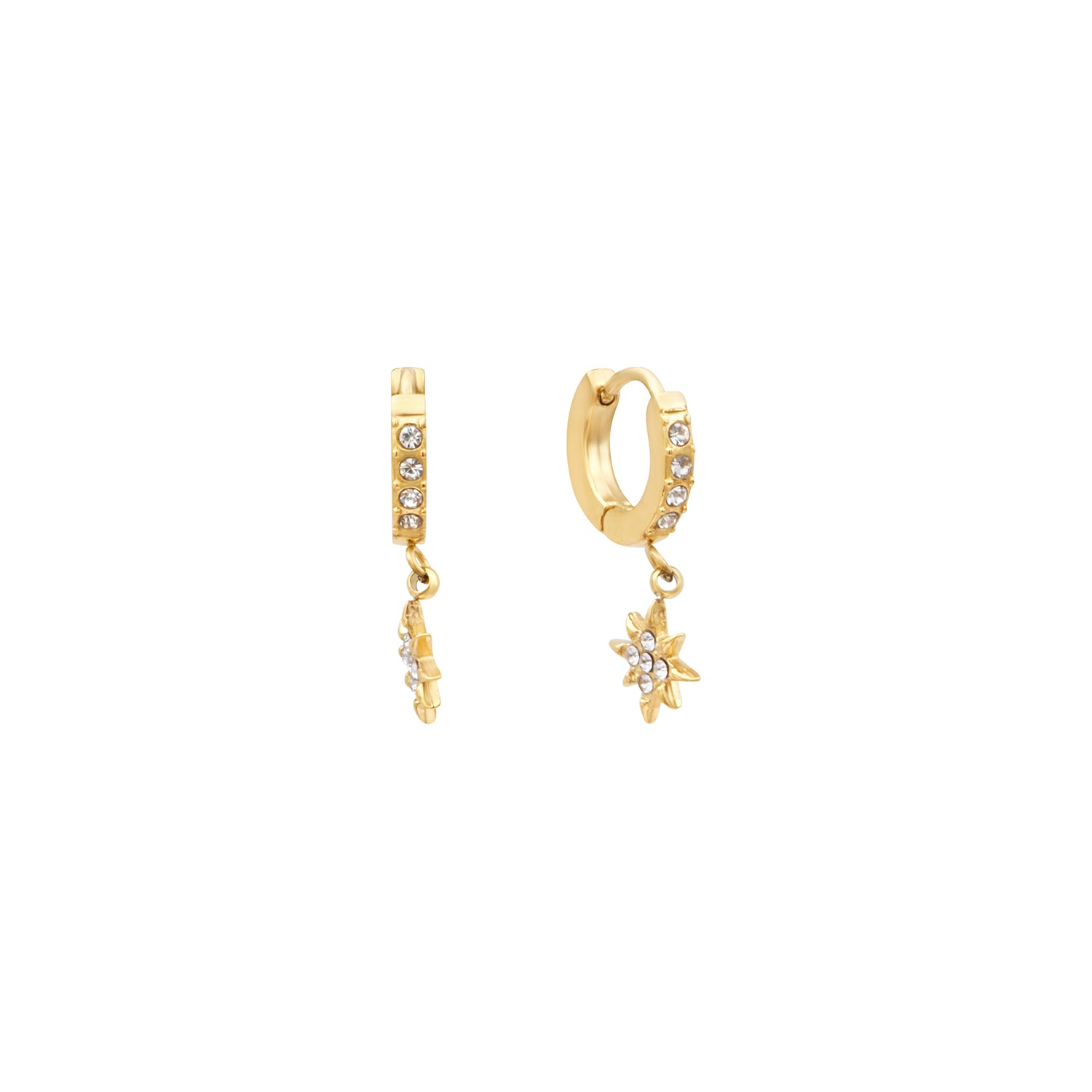 Les mini-créoles Amara, habillées d’une élégante finition dorée, sont sublimées de zircons étincelants qui prolongent leur éclat jusqu’à un pendentif étoile scintillant. Leur design raffiné mêle brillance et délicatesse, pour un jeu de lumière envoûtant. Un bijou précieux et intemporel, idéal pour illuminer vos tenues avec élégance et poésie.