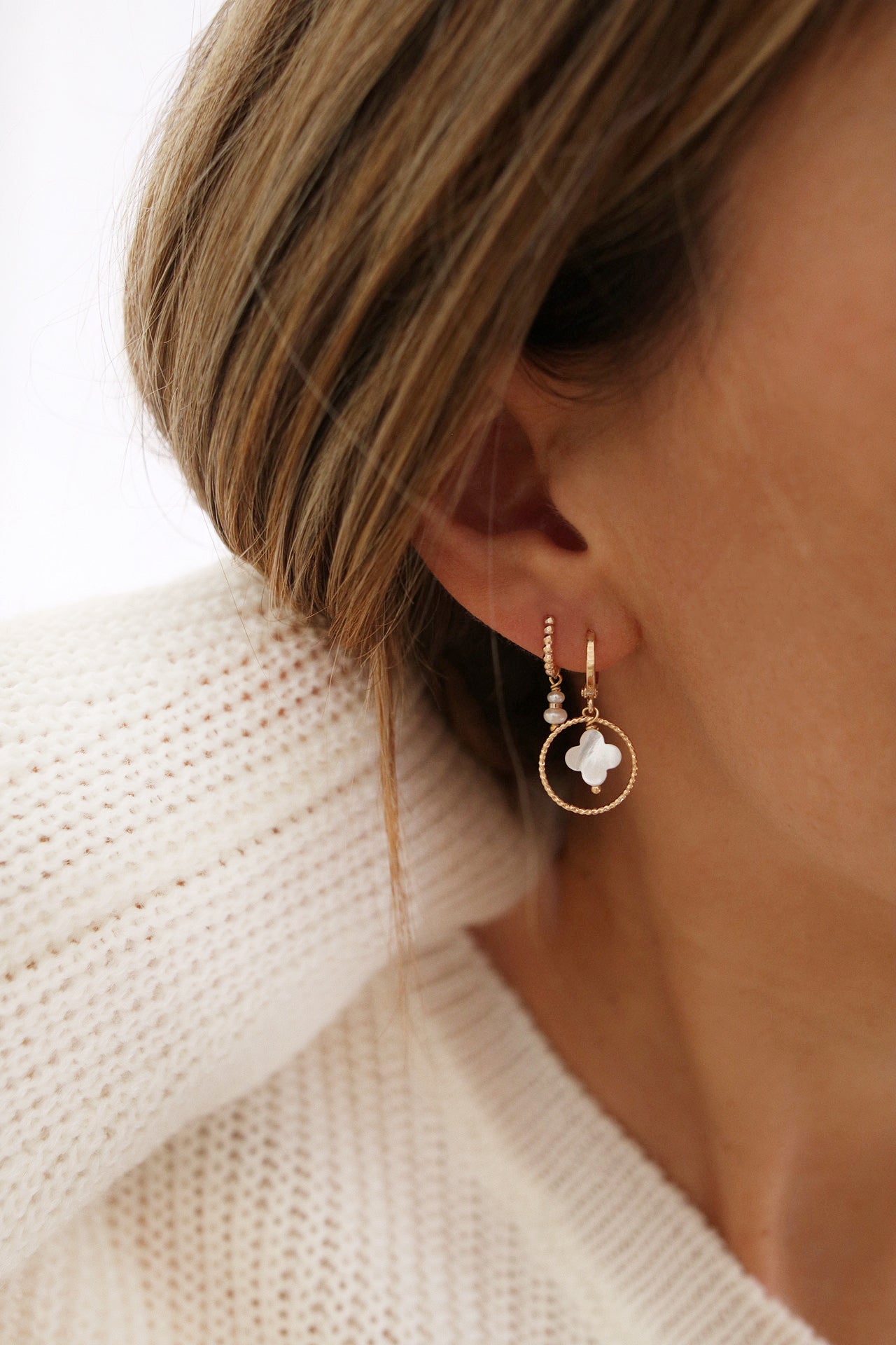 Les mini-créoles Cléa se distinguent par l’élégance de leur cercle finement torsadé, rehaussé d’un trèfle en nacre aux reflets lumineux. Leur design raffiné allie délicatesse et modernité, offrant une touche poétique et intemporelle à vos tenues. Féminines et subtiles, elles se portent avec grâce au quotidien comme lors de vos instants les plus précieux.