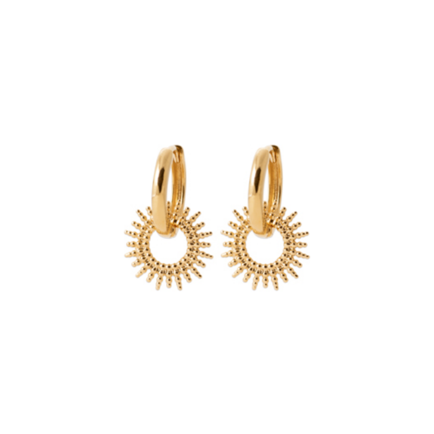 Les mini-créoles Soléna, en finition dorée, se distinguent par leur pendentif rayonnant évoquant la chaleur et la lumière du soleil. Leur design finement travaillé capte l’éclat avec subtilité et confère une touche solaire à votre allure. Un bijou lumineux et intemporel, parfait pour illuminer vos tenues du quotidien comme vos moments les plus précieux.
