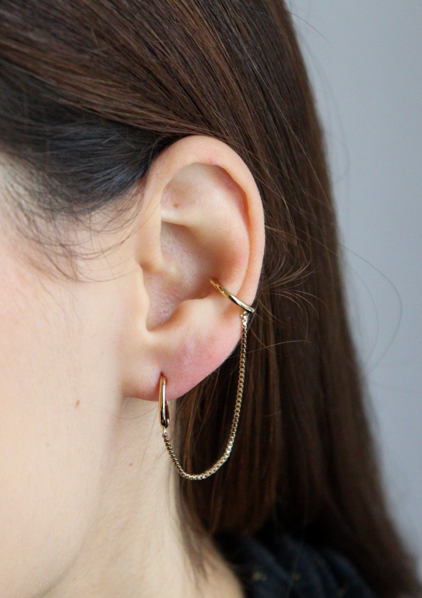 Découvrez notre boucle Paris, une mini créole et un earcuff réunis en un et même bijou par une chaine discrète.