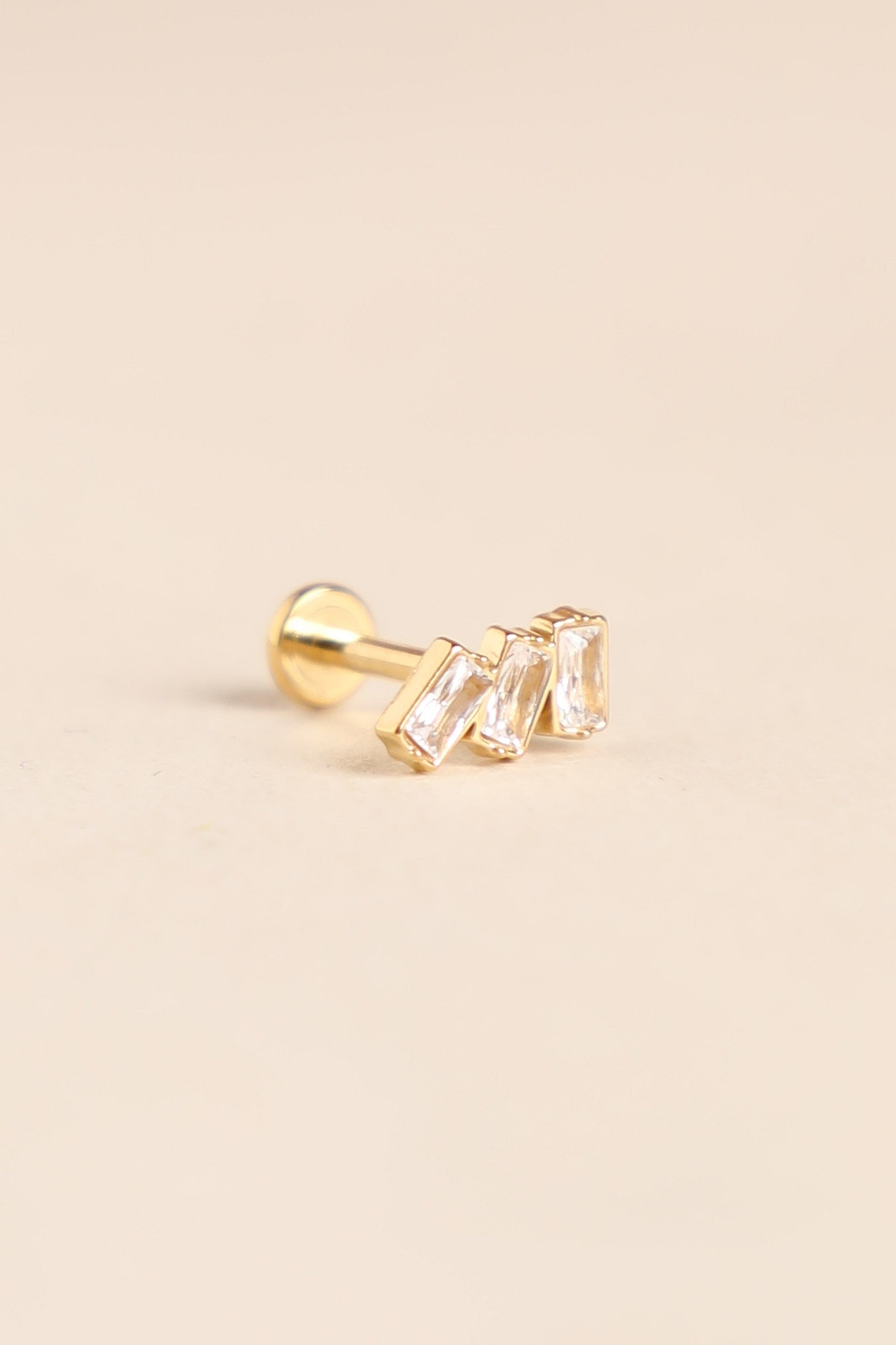 Piercing en acier composé de 3 zircons blancs. Idéal pour l'hélix ou le flat.