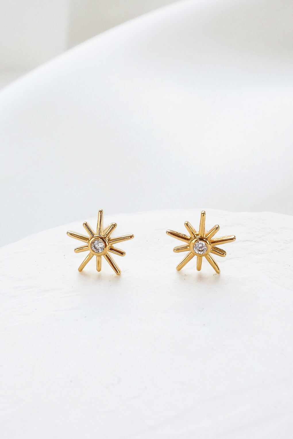 Boucles d'oreilles Imperial Dorées: Jolies puces composées d'une étoile sertie d'une petite pierre Zircon cristal.