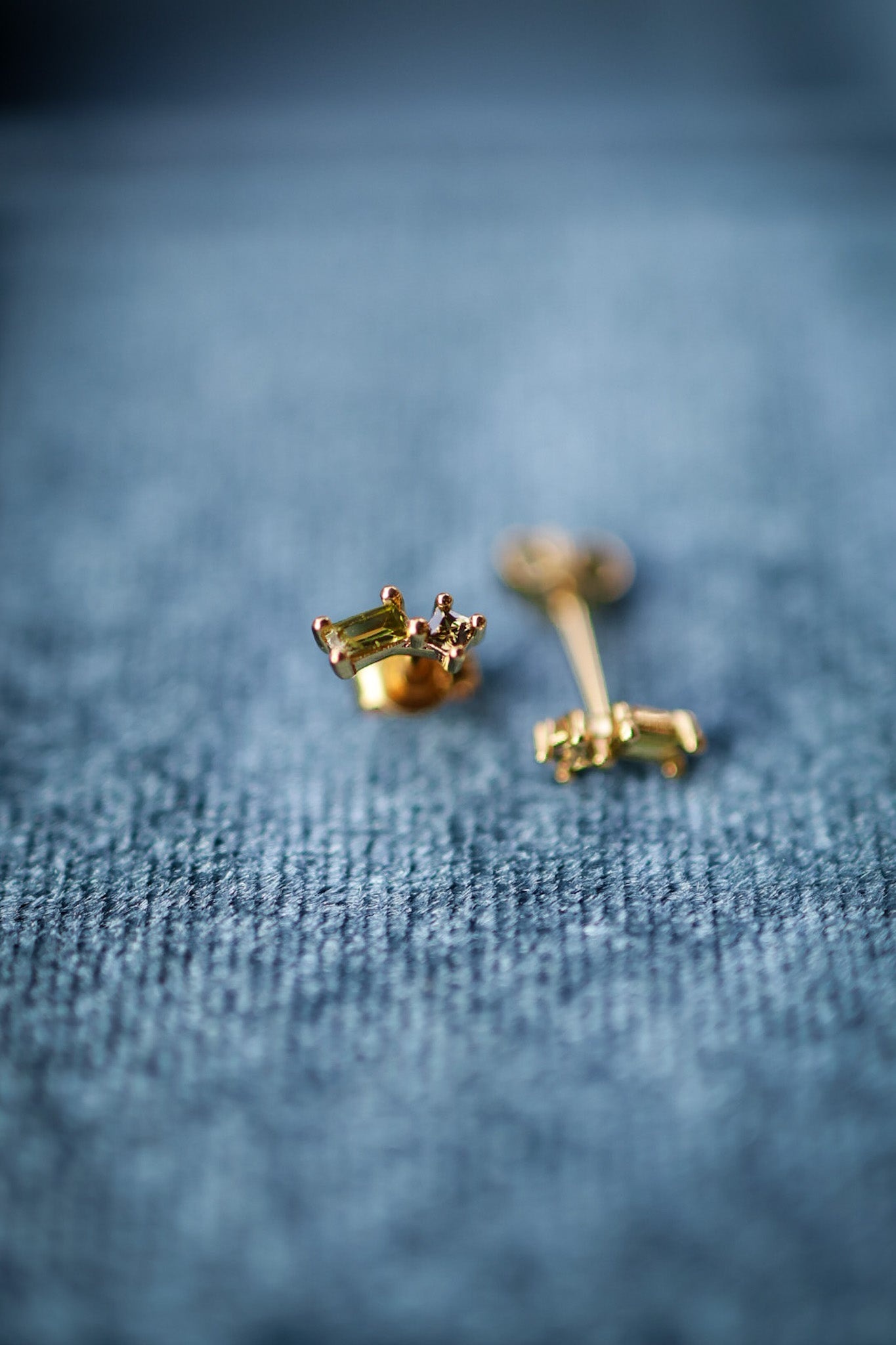 Sur la première photo portée, la mannequin porte également les boucles chaînes Willy (Péridot), les boucles Jasper et les boucles chaîne Icare.