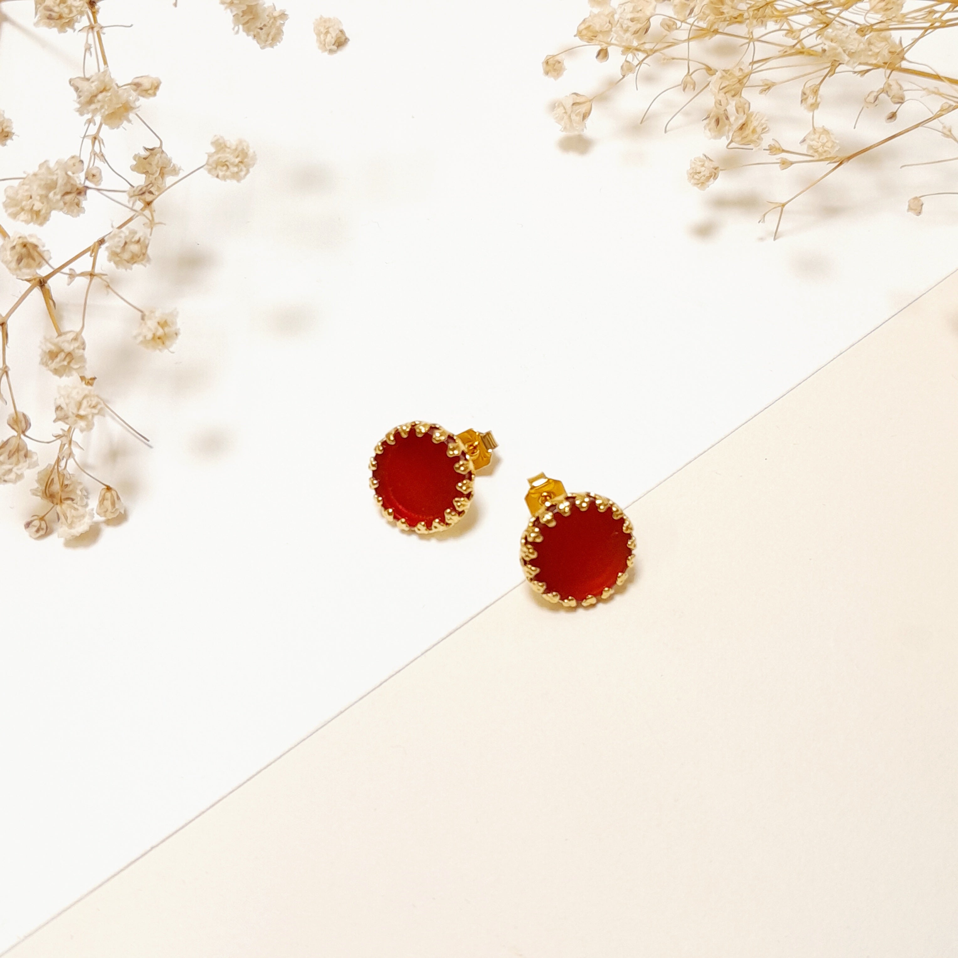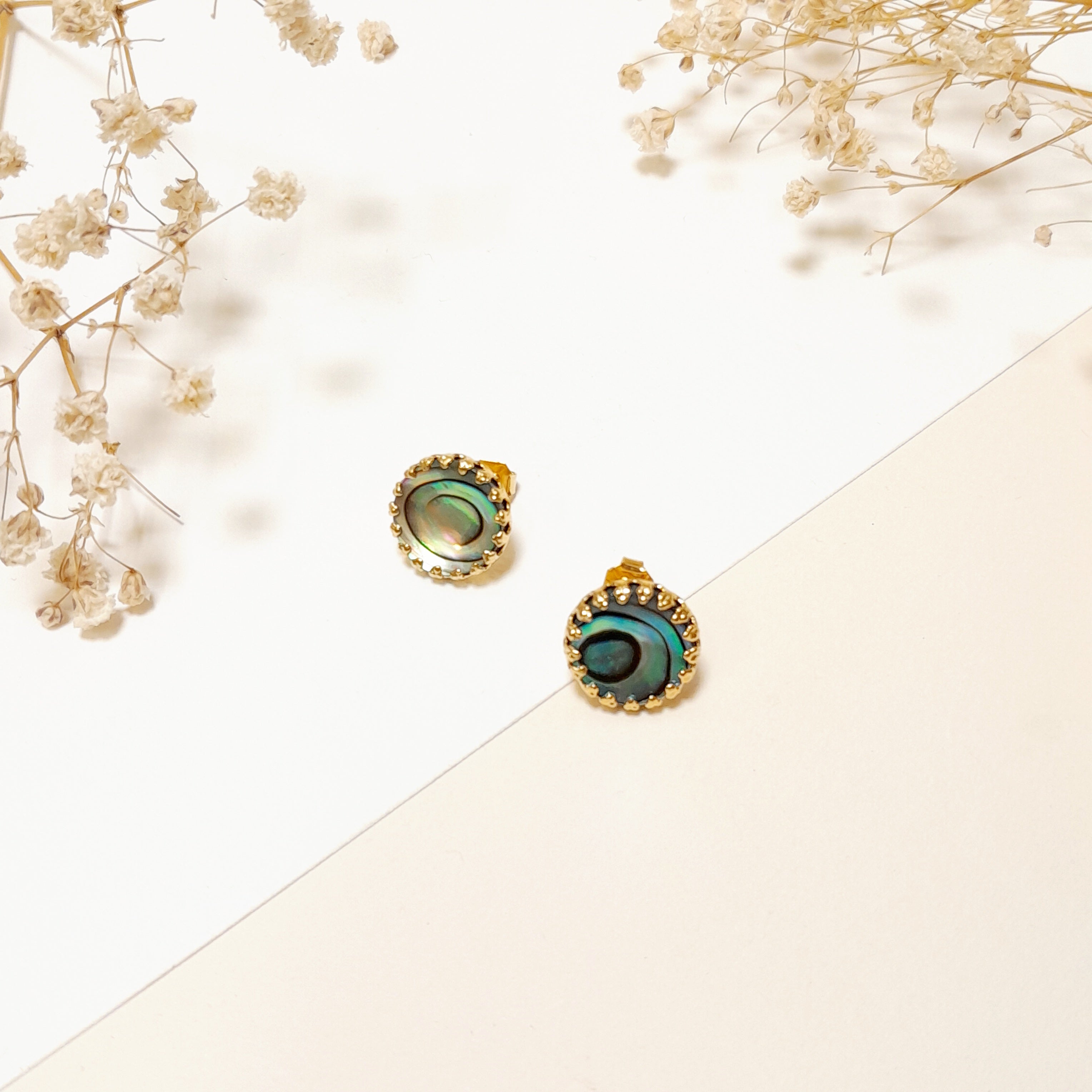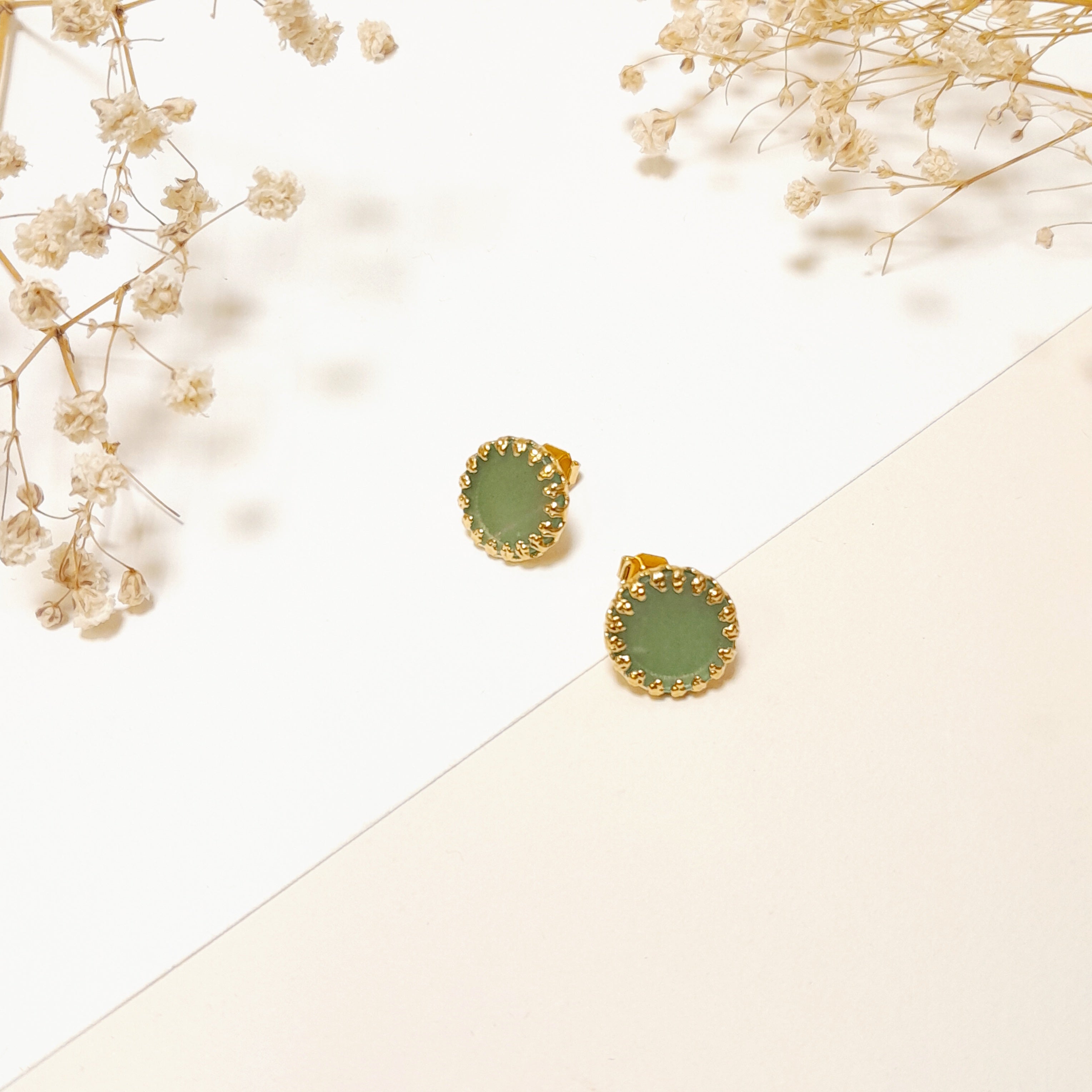 Boucles puces ornées d'une pierre naturelle plate de 12 mm serties de picots.
