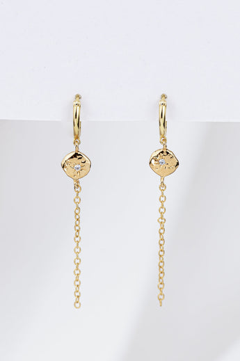 Ces boucles d’oreilles Yara, délicates et uniques, présentent un petit anneau orné d’une pierre de zircon suspendue à une fine chaîne. Un bijou essentiel qui apporte une touche d’élégance discrète à votre collection, parfait pour sublimer votre quotidien avec douceur et raffinement.