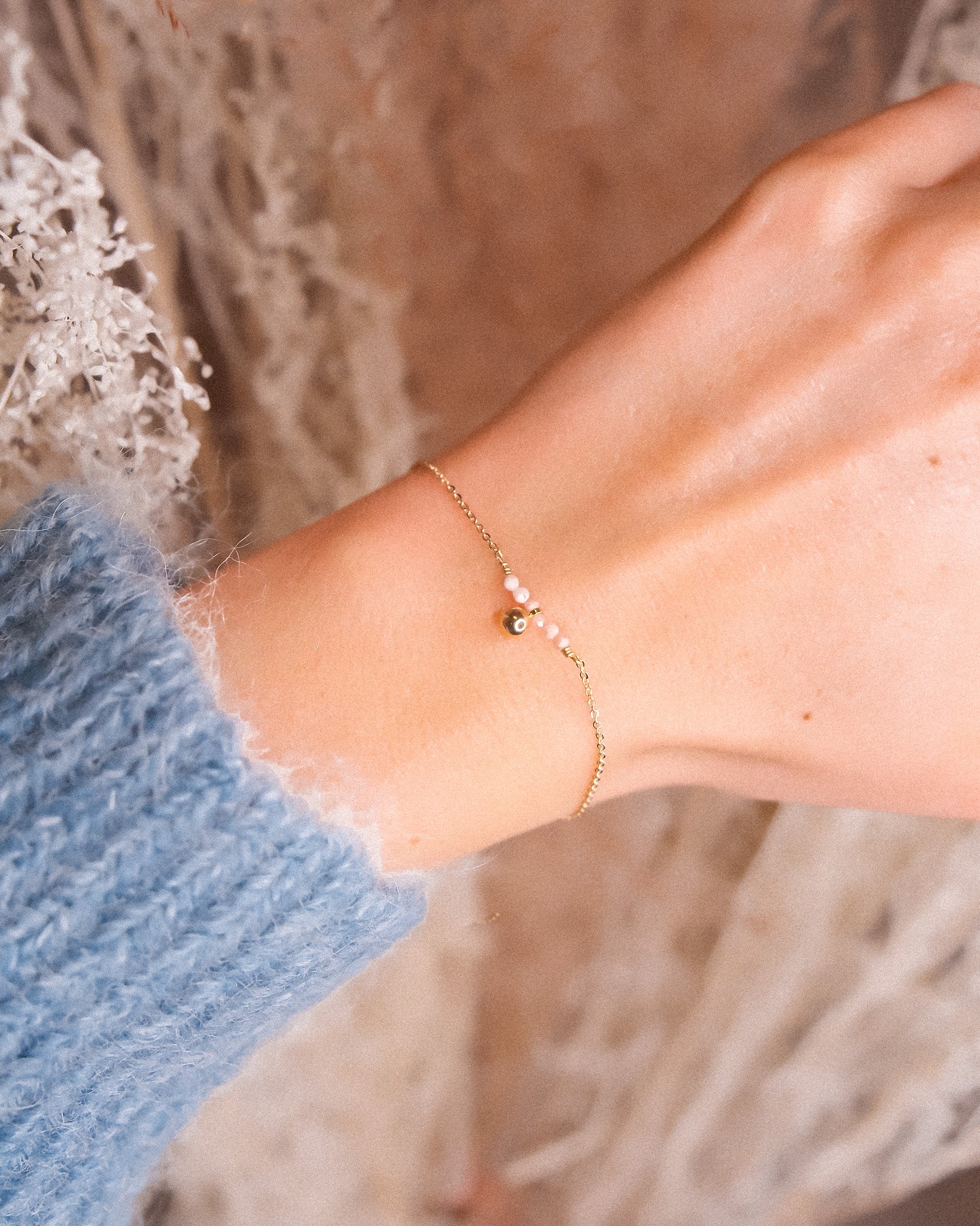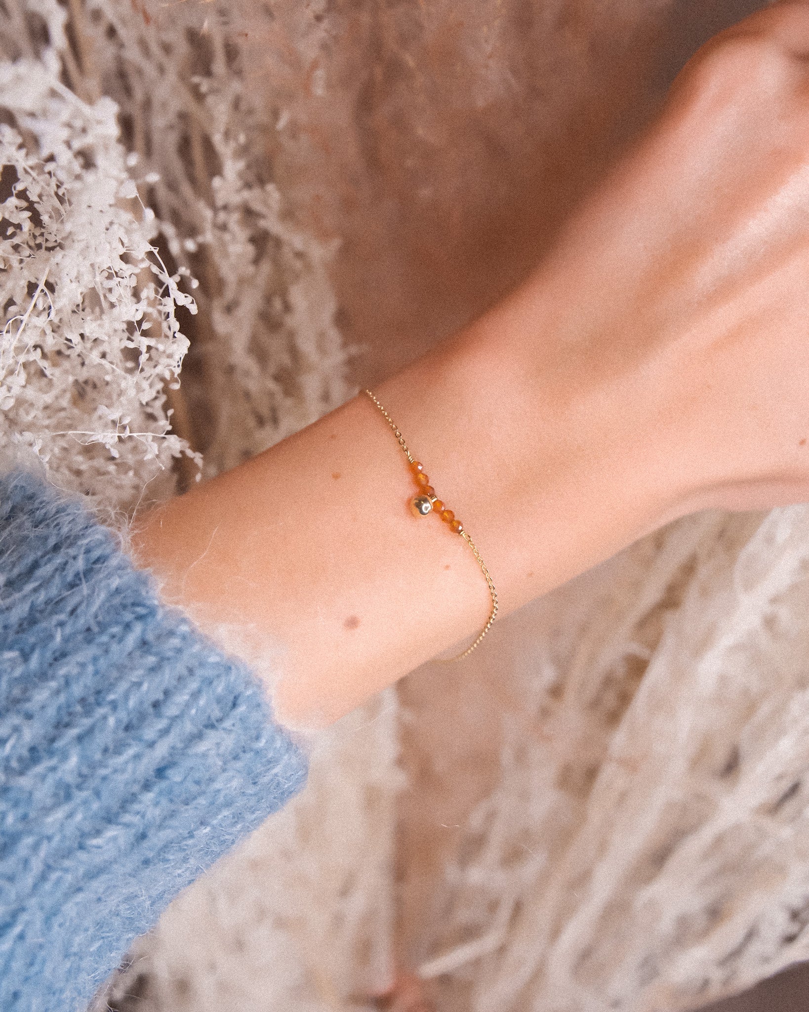 Bracelet avec une boule lisse de 4mm de diamètre accompagnée de 6 petites pierres naturelles.