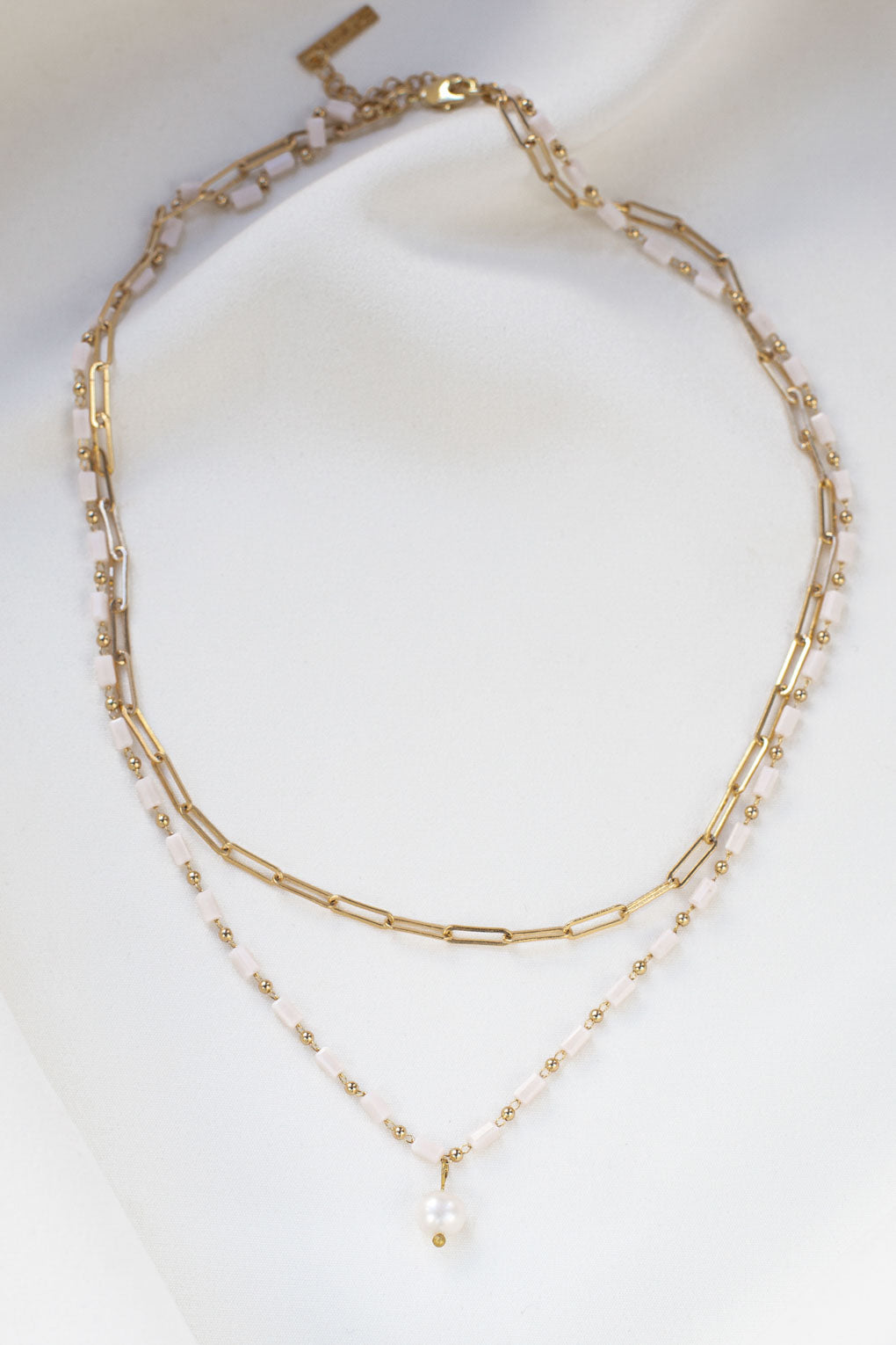 Dimensions : Collier long 42.5 cm / Petit collier 40 cm /+ 4.5 cm chaine de rallonge.