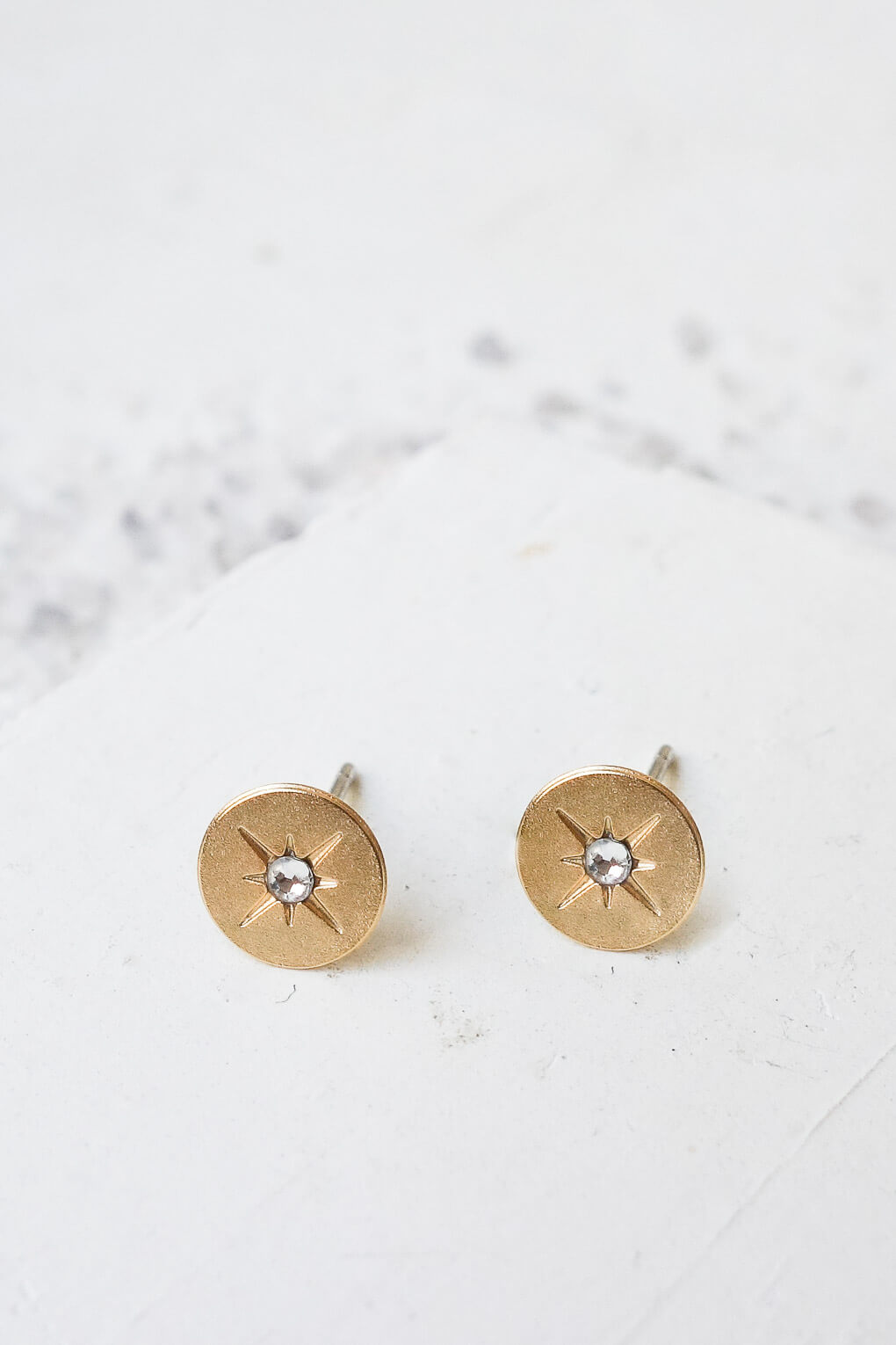 Boucles Spark Dorées: Les puces Spark sont composées d'un cercle au motif étoilé serti d'une pierre Swarovski noire ou cristal. Un bijoux raffiné et original.