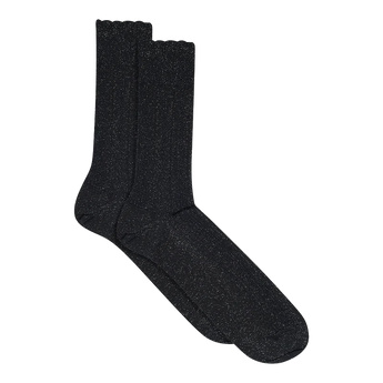 Magnifiques chaussettes pailletées en coton de MPwoman. Elles présentent un large bord côtelé et un bord ondulé.