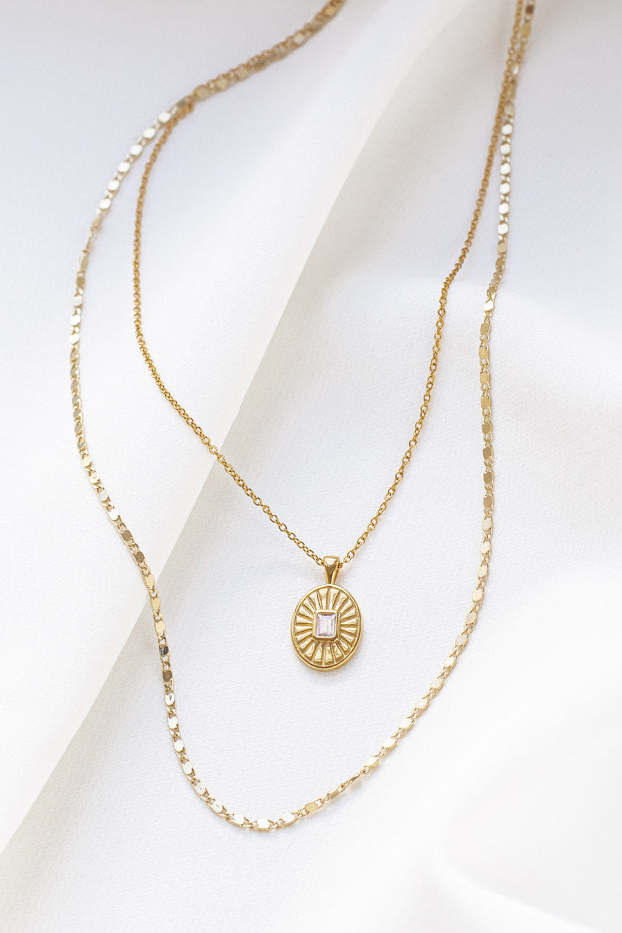 Un beau collier multiple, la couche inférieure est une chaîne à maillons délicats et la couche supérieure est ornée d'un pendentif ovale serti de pierre de zircone.
