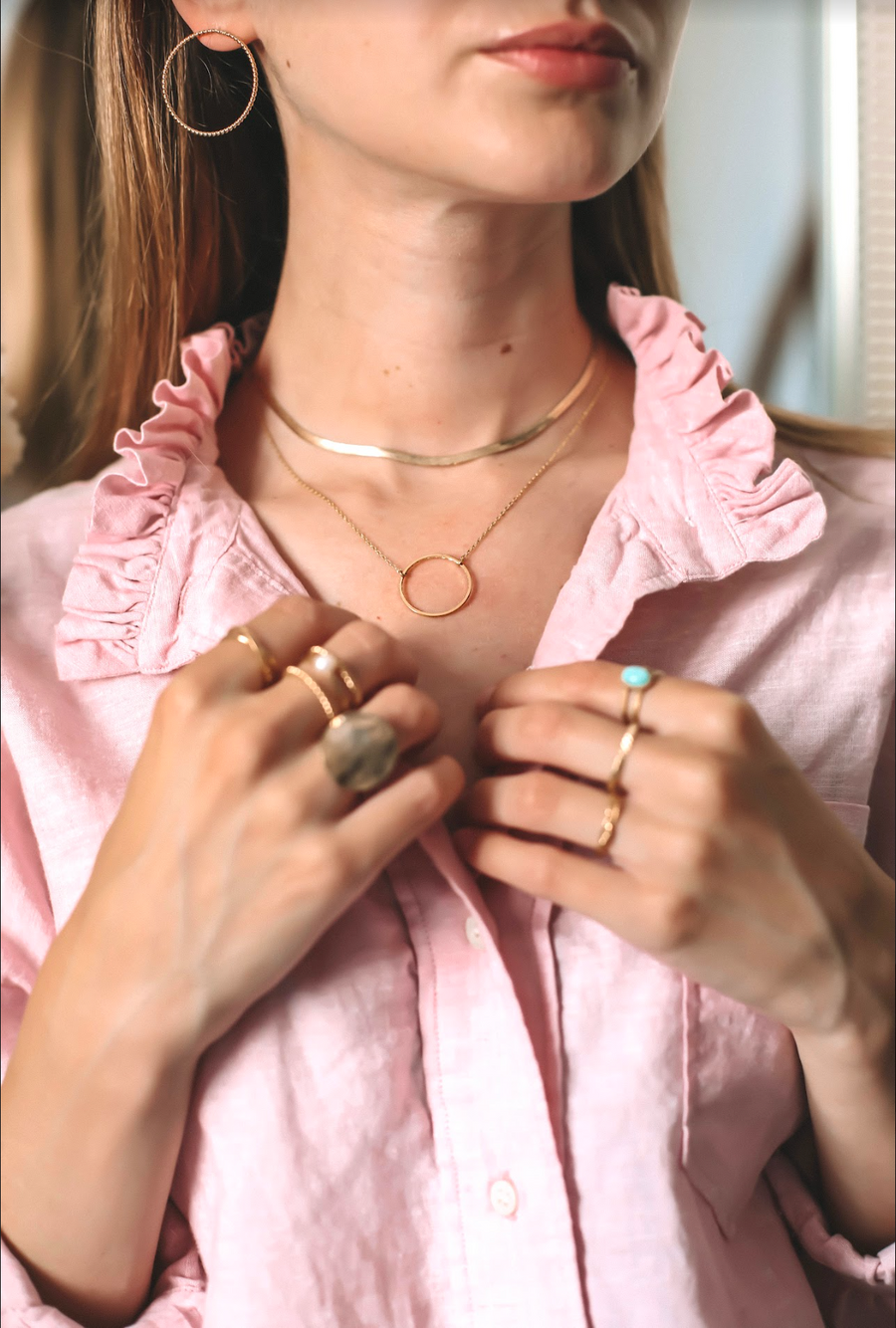 Collier avec un anneau facetté, idéal pour parfaire vos tenues.