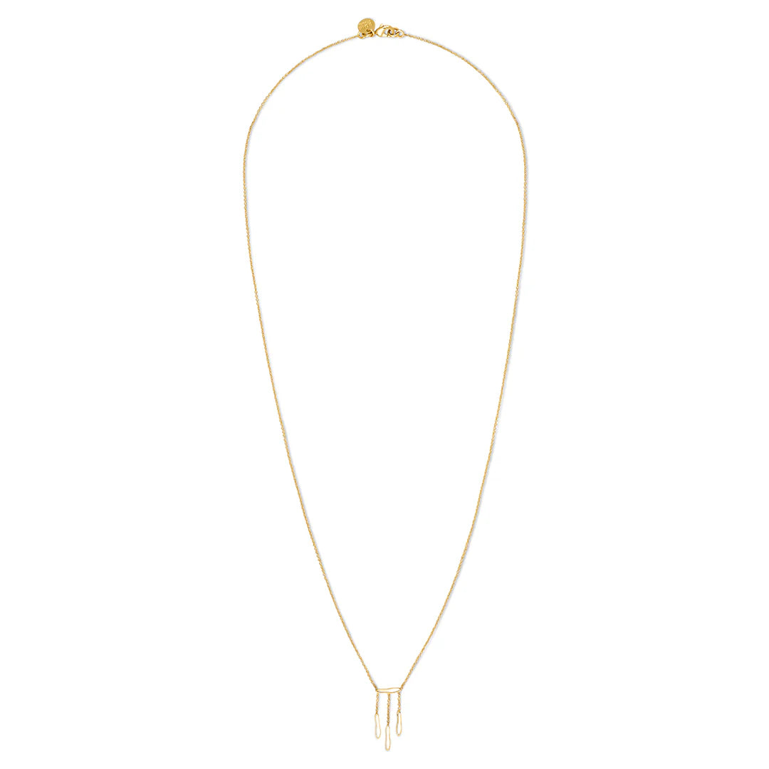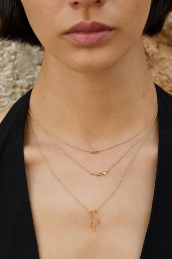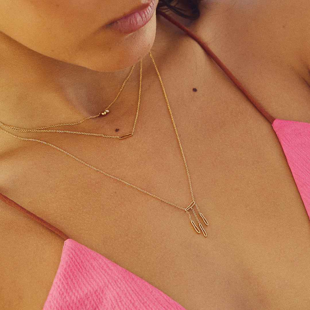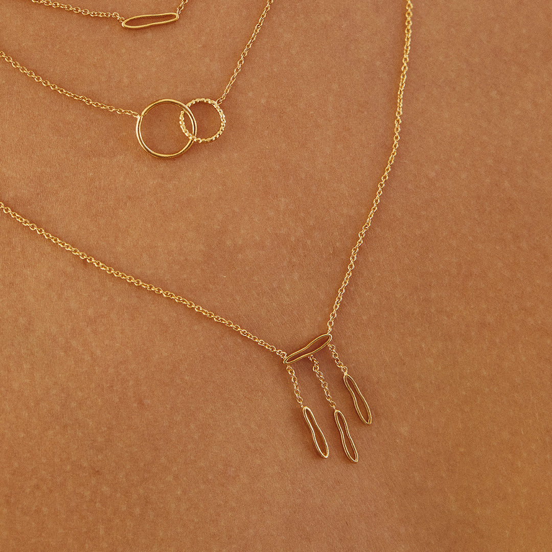 Le Collier Long Songe présente trois pendentifs organiques délicatement plaqués or, parfaits pour créer un effet d’accumulation harmonieux avec le Collier Court Songe. Sa longueur équilibrée ajoute une dimension élégante à votre silhouette, tout en restant léger et confortable à porter au quotidien. Un choix idéal pour enrichir votre collection de bijoux avec style et douceur.