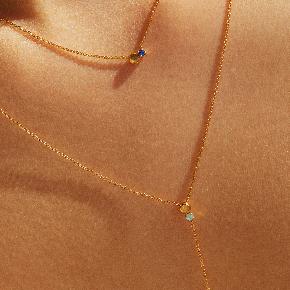 Sur la photo portée, le mannequin porte également le collier court Zéphyr.