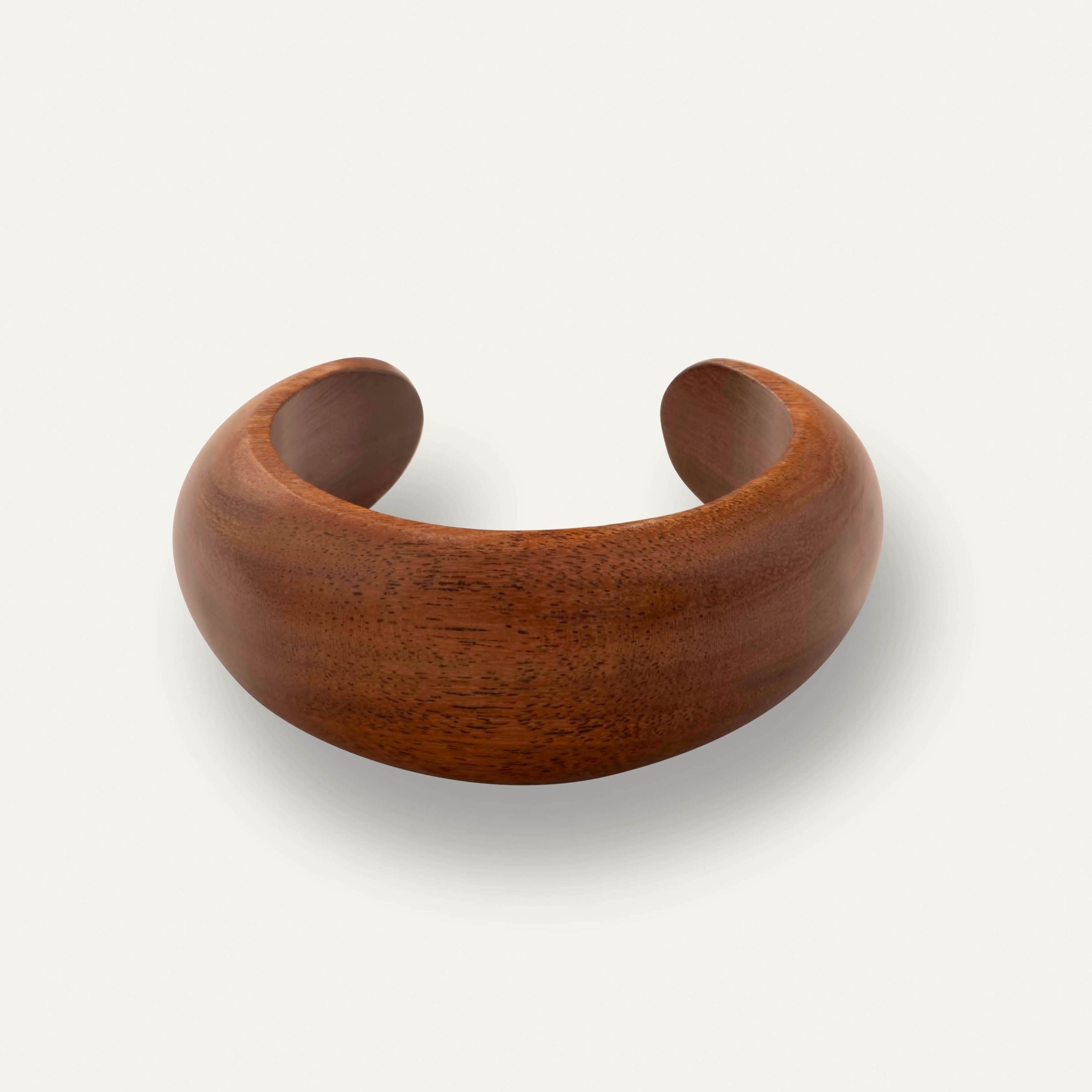 Jonc manchette ouvert en bois naturel. Finition brillante.