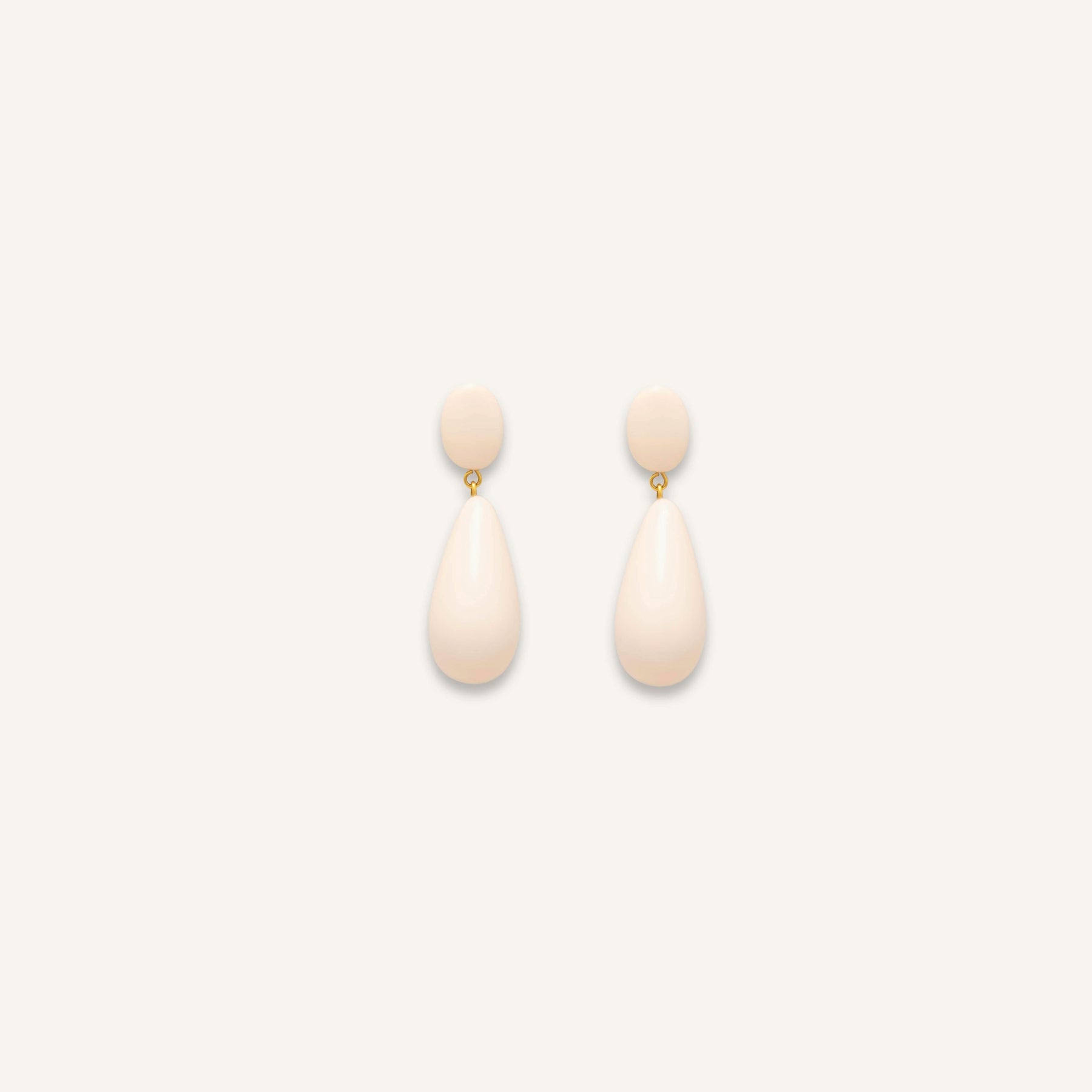 Boucles d'oreilles en acétate de couleur. Détail goutte ovale bombée. Finition brillante.