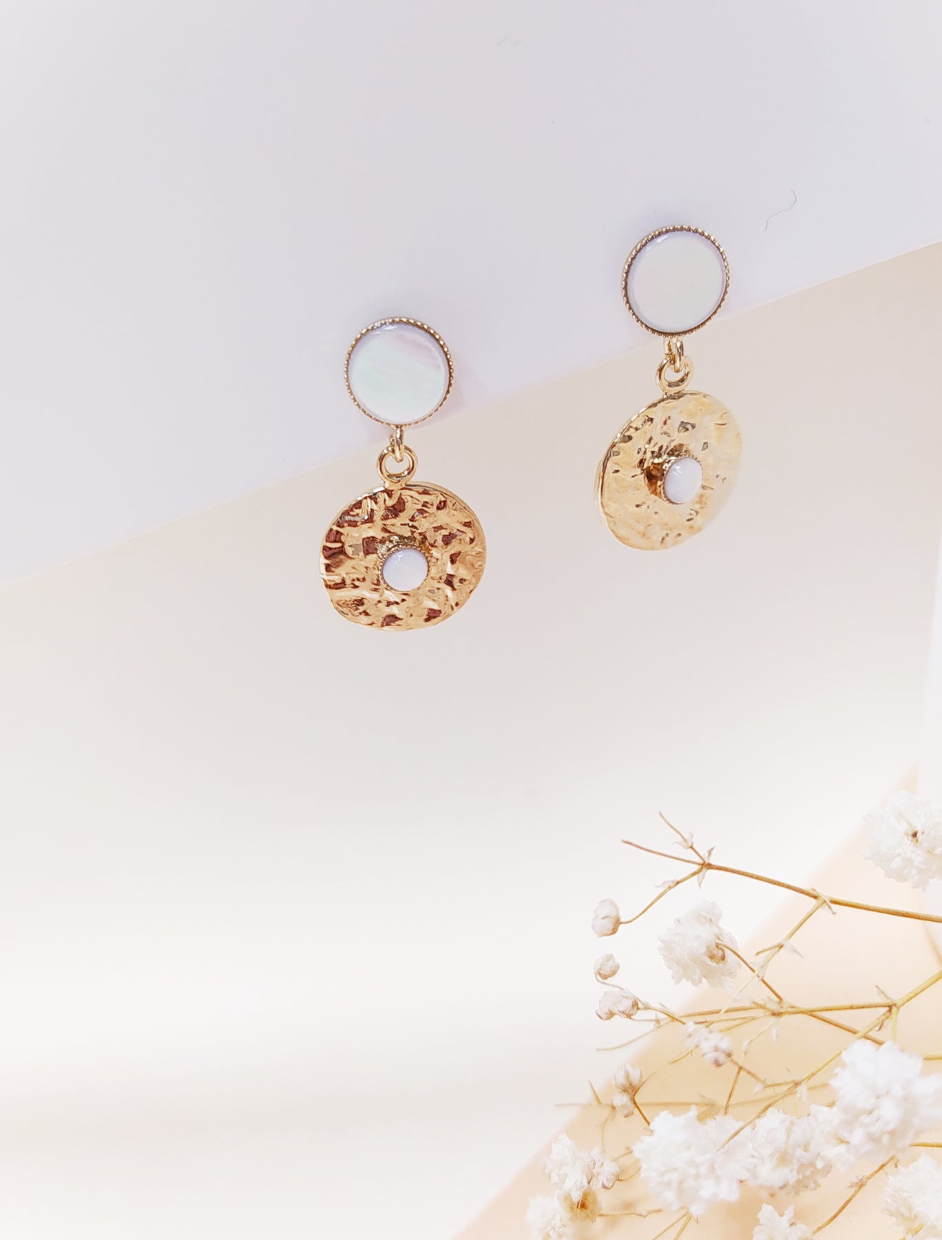 Composition: plaqué or 3 microns + pierre semi-précieuse Malachite ou Nacre Blanche.