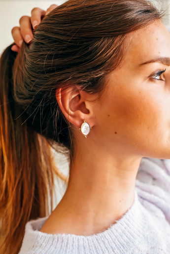 Matière: Laiton plaquée à l'or 3 microns 24k + pierre semi-précieuse.