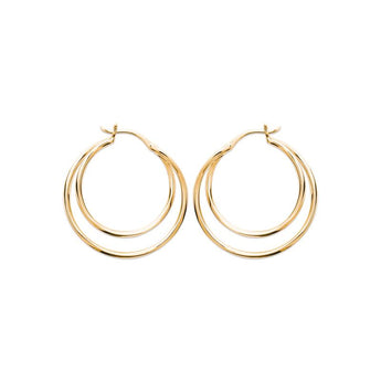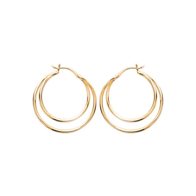 Créoles doubles aux lignes fines et parfaitement équilibrées. Légères et lumineuses, elles apportent du volume avec subtilité et signent une élégance moderne, simple et raffinée.