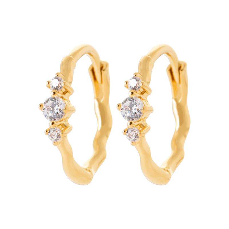 Léora associe une créole aux lignes légèrement irrégulières à trois éclats scintillants délicatement sertis. Élégantes et féminines, elles apportent juste ce qu’il faut de lumière pour illuminer le visage avec douceur.