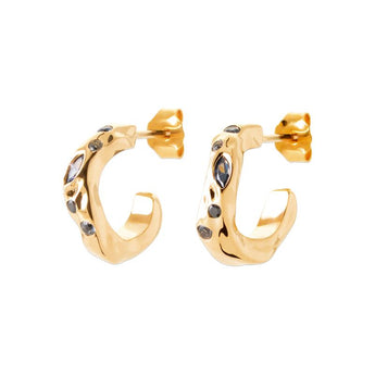 Zalya revisite la mini créole avec un volume organique ponctué de pierres aux reflets profonds. Audacieuses et modernes, elles apportent une touche artistique et affirmée qui attire le regard avec élégance.